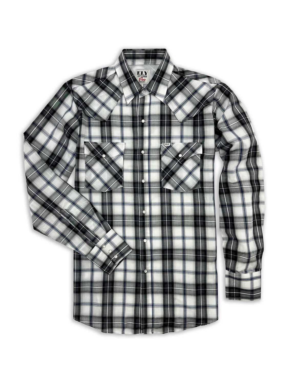 Ely and Walker Mens Pro Vented Plaid Black/White Poly/Cotton L/S Shirt