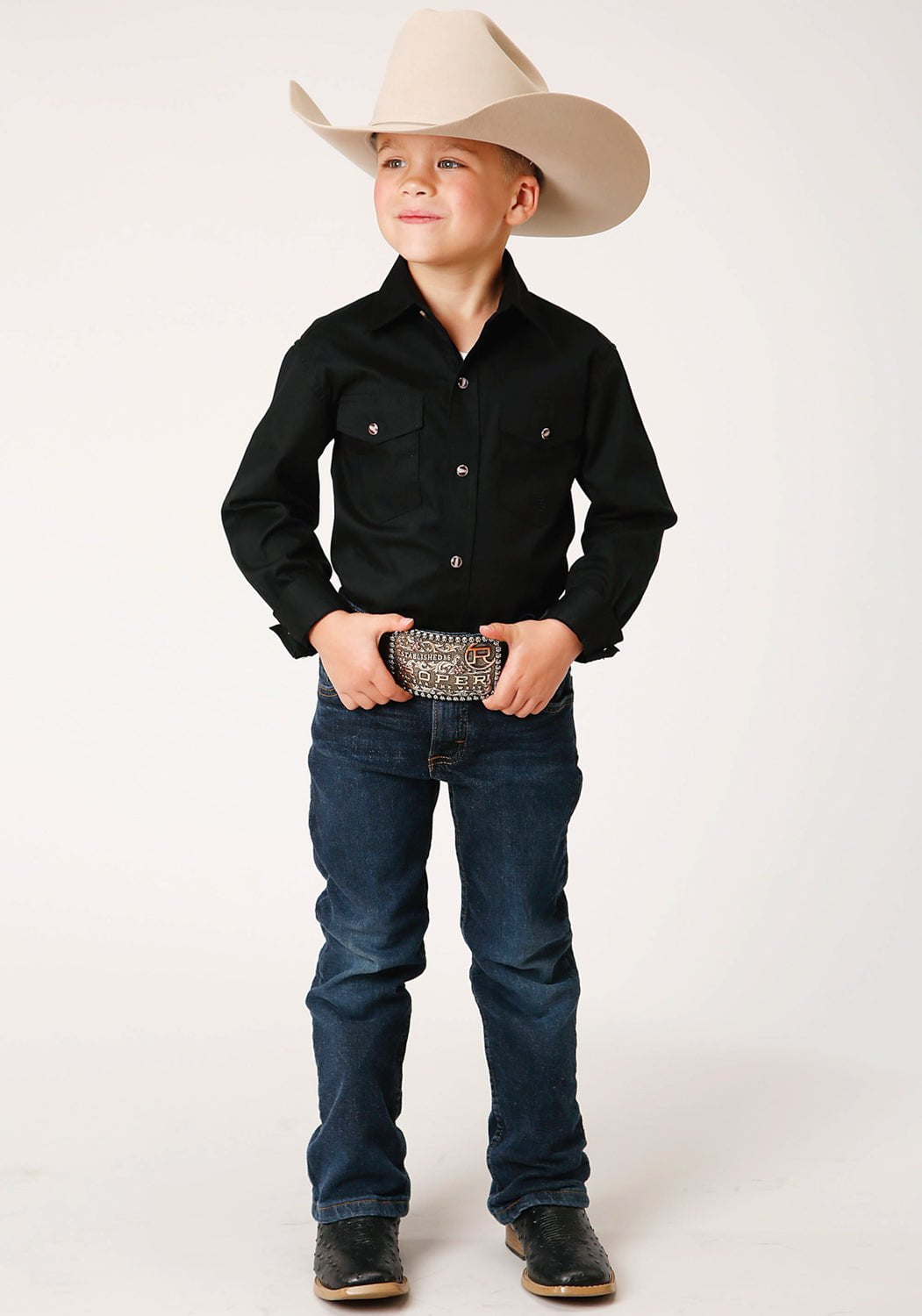 Roper Boys Kids Black 100% Cotton Snap L/S Western Shirt