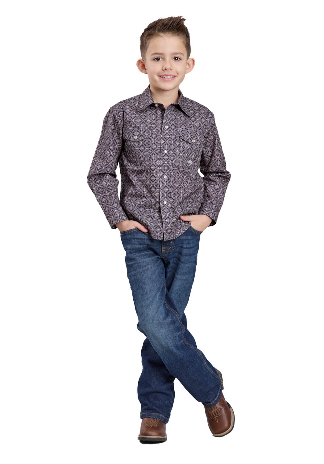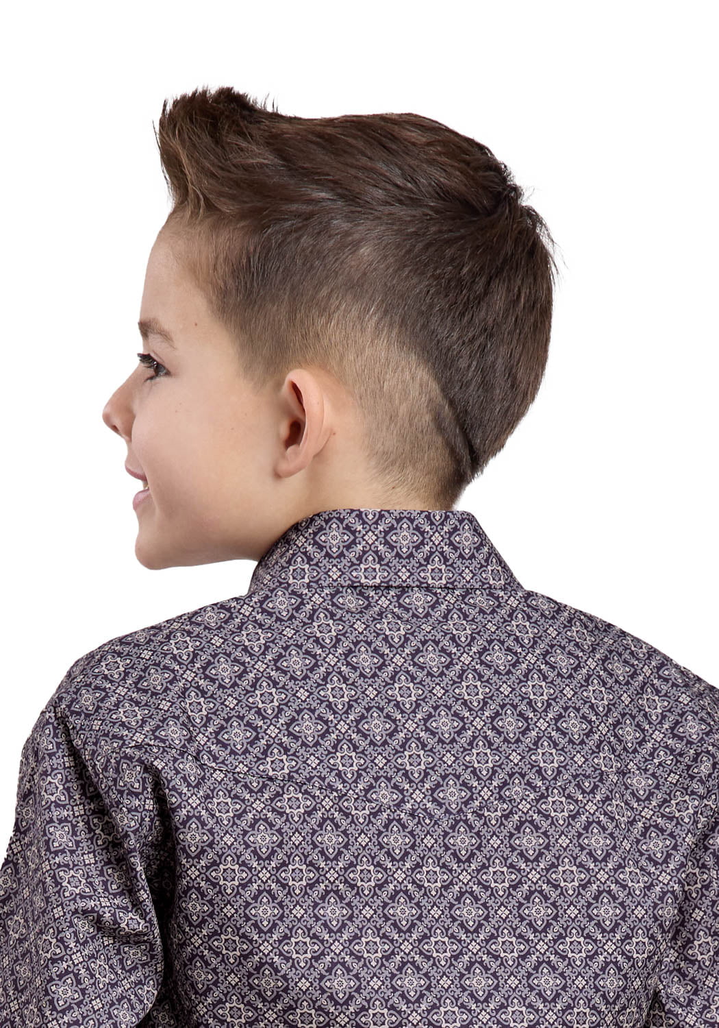 Roper Kids Boys 2580 Plum Foulard Grey 100% Cotton L/S Shirt