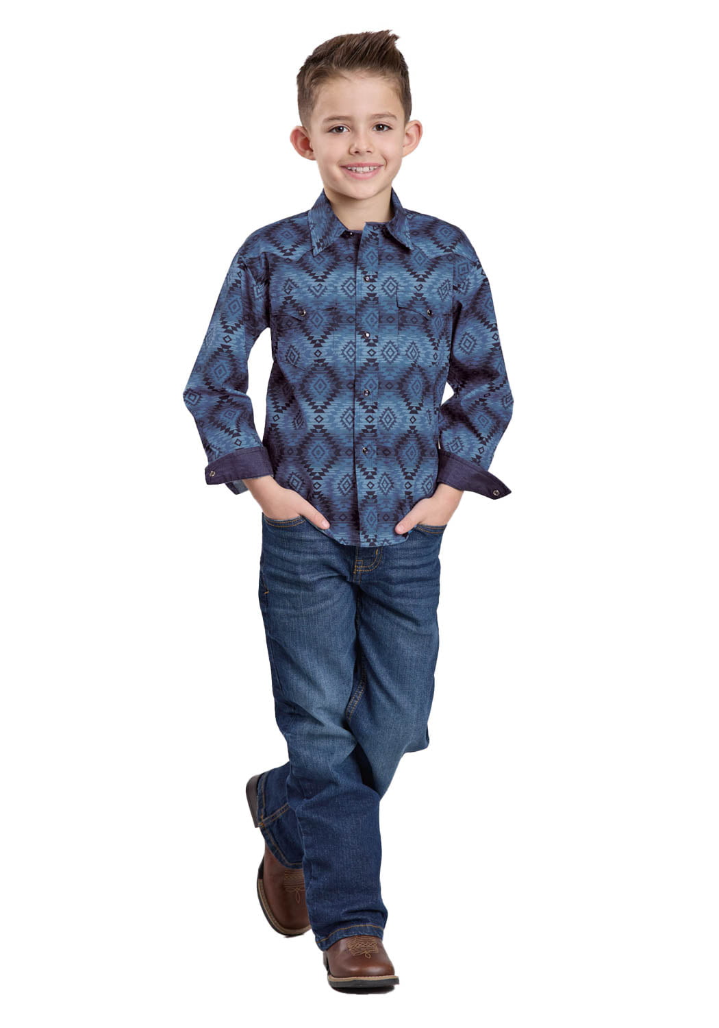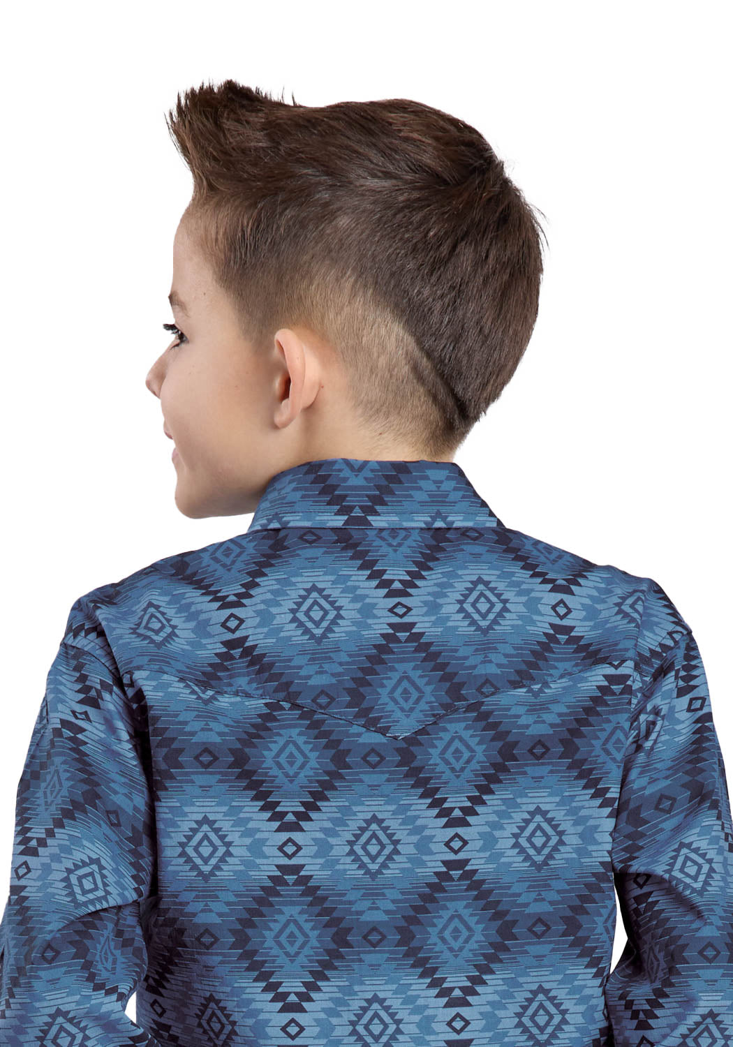 Roper Kids Boys Aztec Serape Print Blue 100% Cotton L/S Shirt