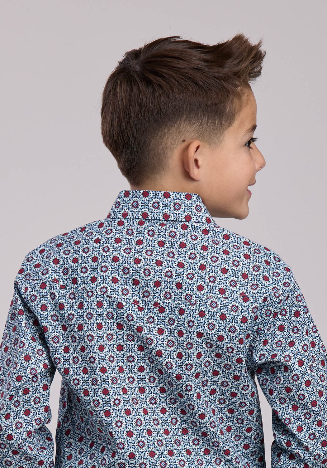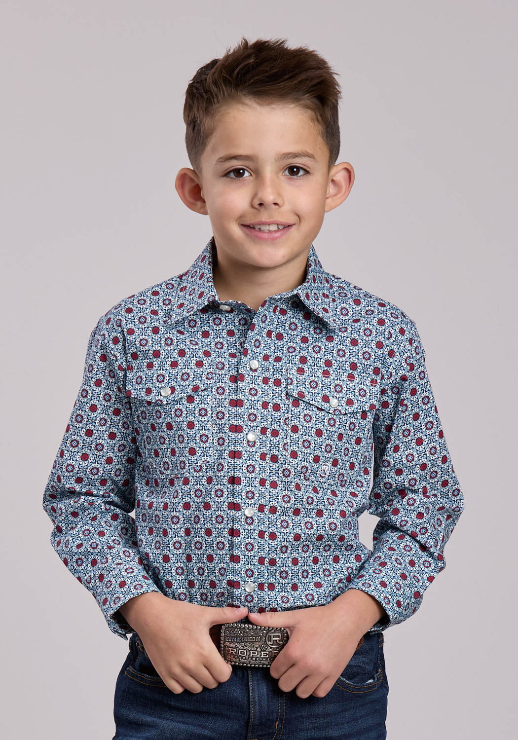 Roper Kids Boys Vintage Scroll Foulard Blue 100% Cotton L/S Shirt