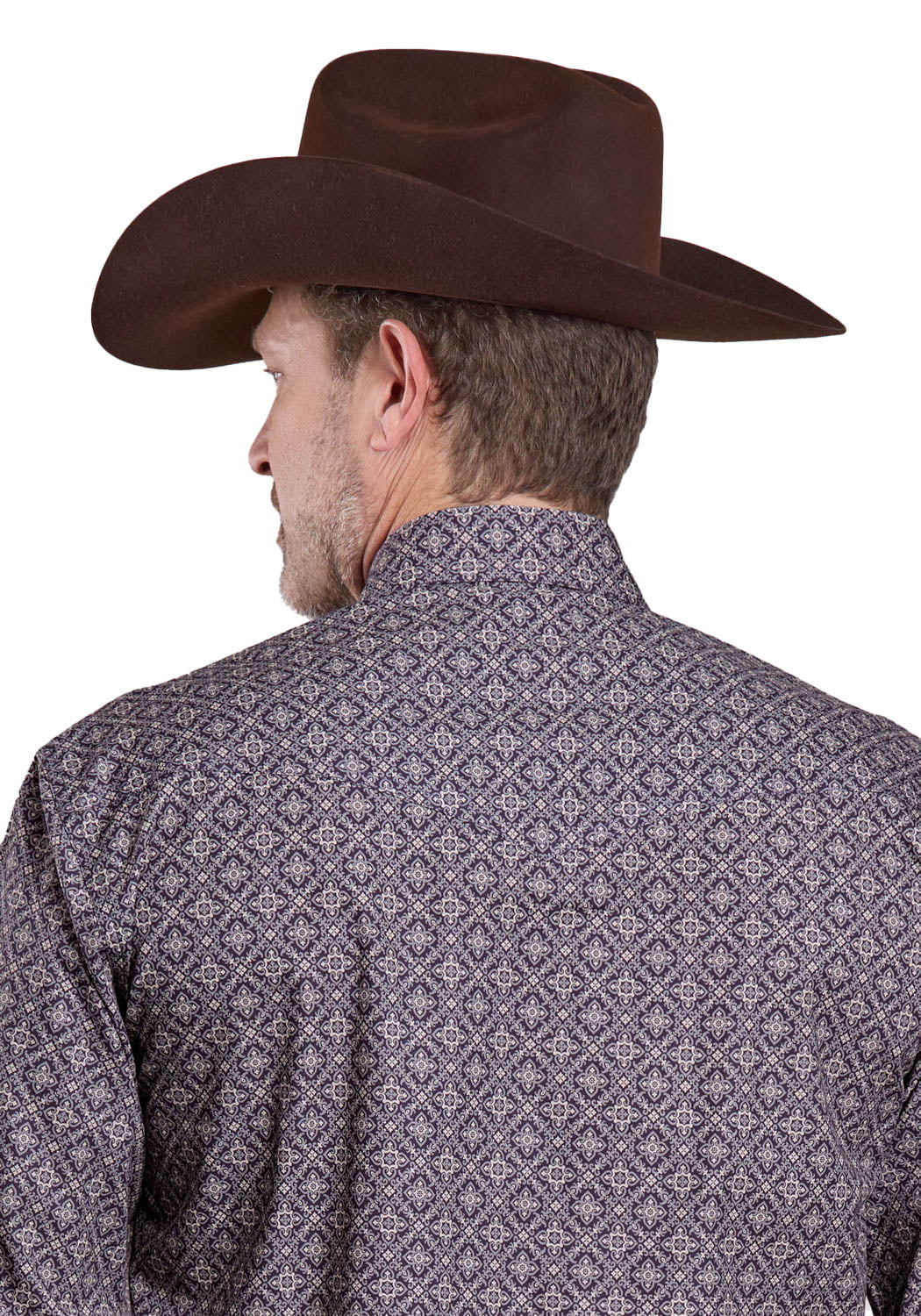 Roper Mens 2580 Plum Foulard Grey 100% Cotton L/S Shirt