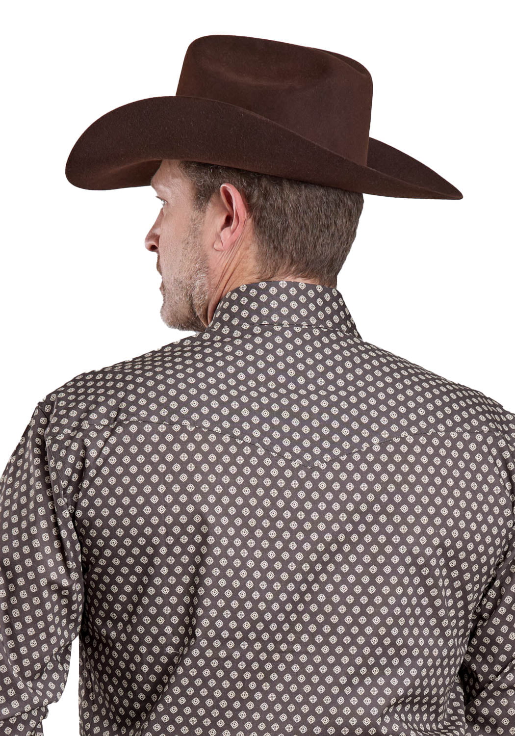 Roper Mens 2594 Stretch Foulard Grey Cotton Blend L/S Shirt