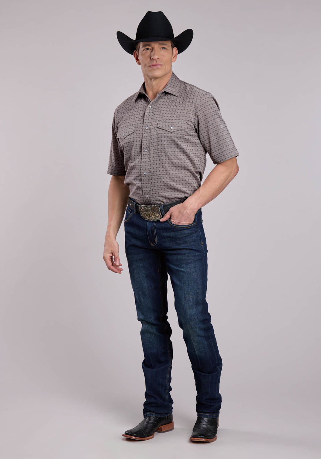 Roper Mens Double Diamonds Tone Grey Poly/Cotton S/S Shirt
