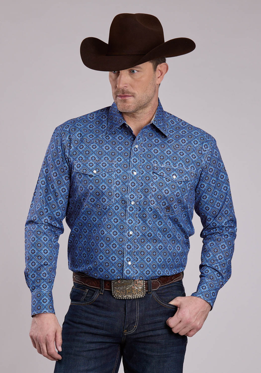 Roper Mens Medallion Paisley Vintage Blue 100% Cotton L/S Shirt
