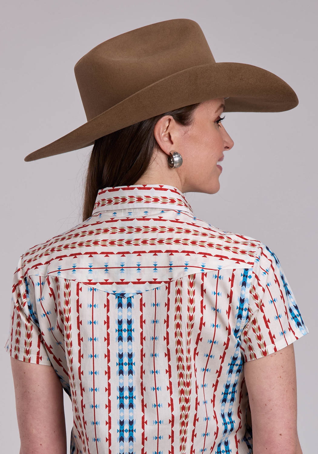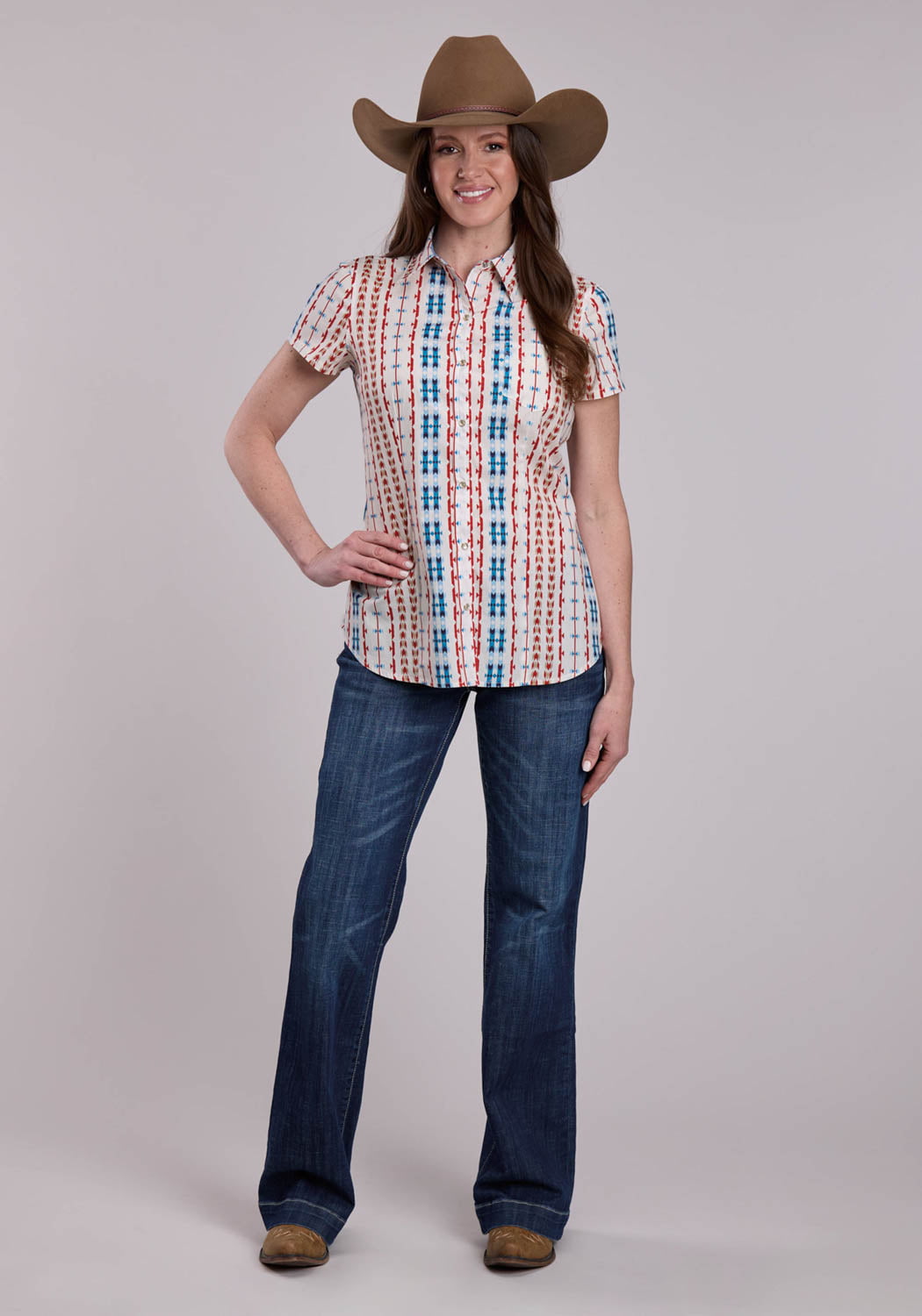 Roper Womens 2829 Vertical Aztec Red/Blue 100% Cotton S/S Shirt