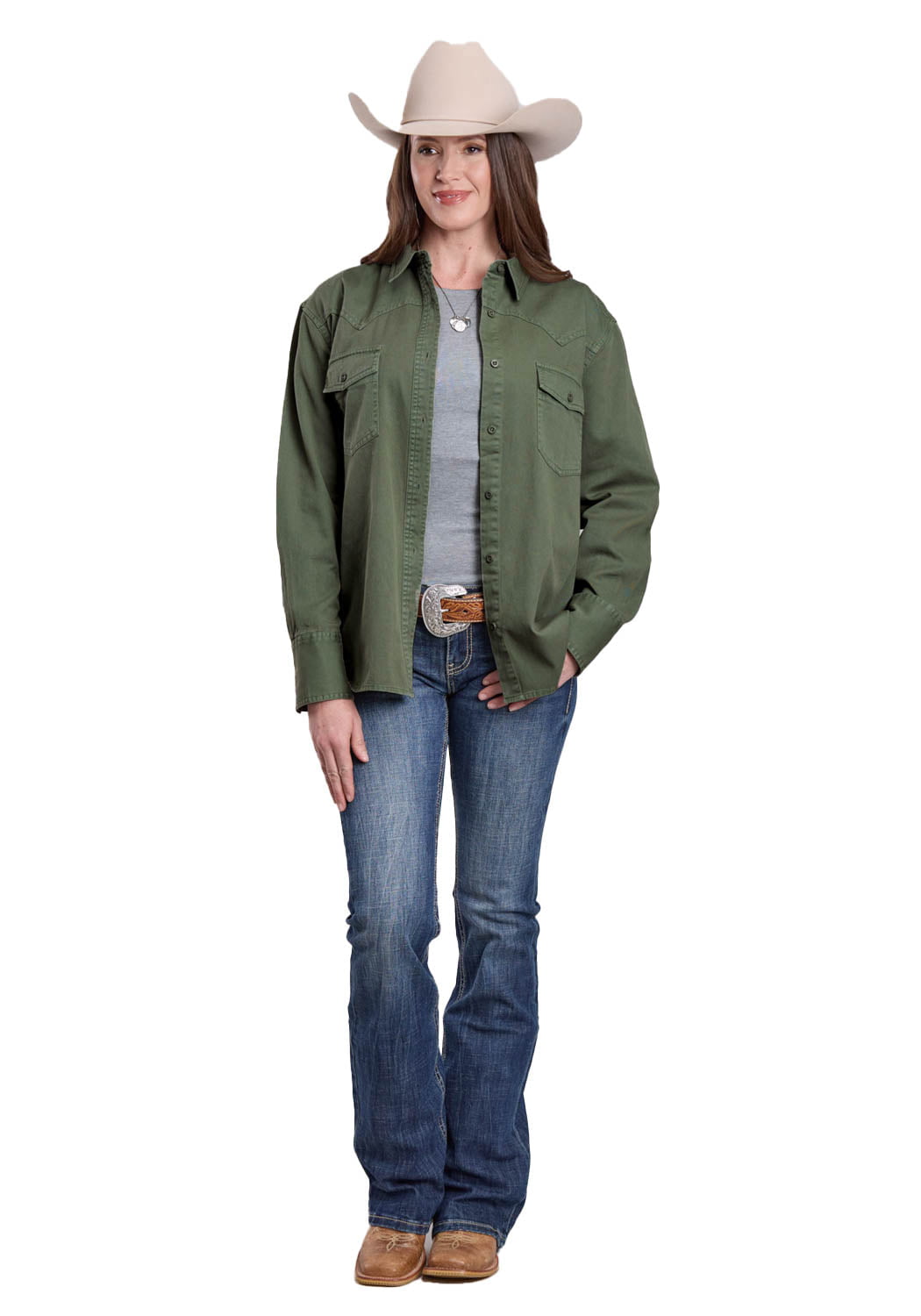Roper Womens Pigment Dyed Shirt Loden Green 100% Cotton Cotton Jacket