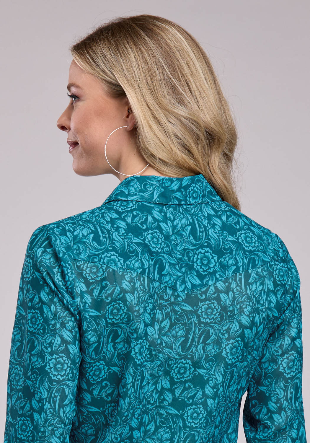 Roper Womens Tooled Floral Print Teal 100% Polyester L/S Shirt