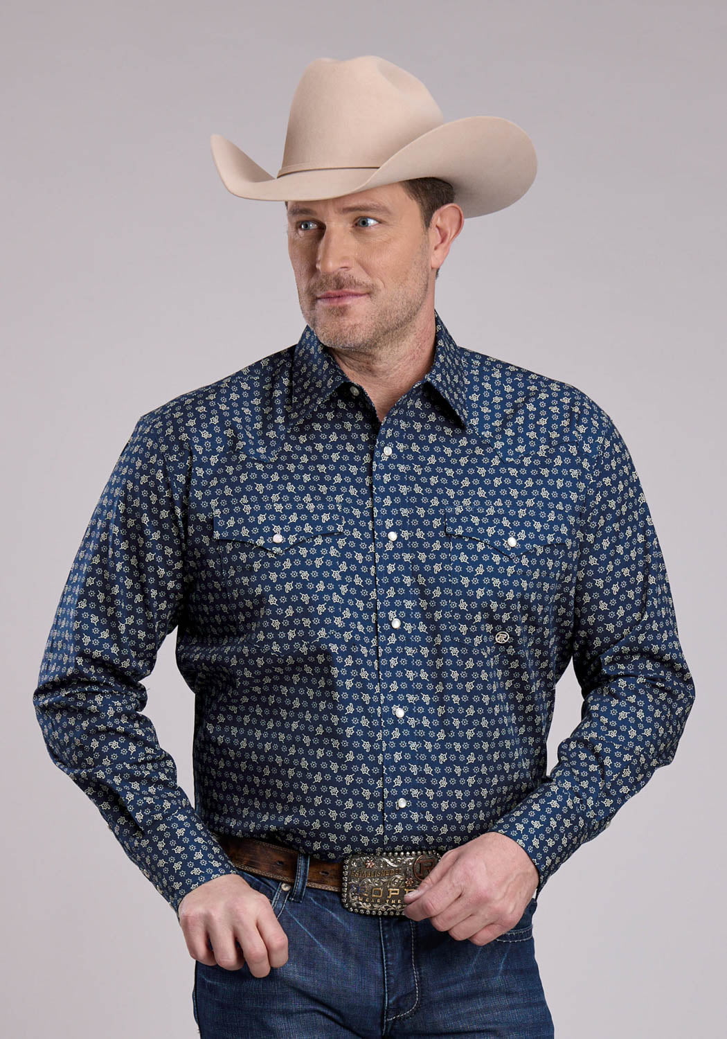 Roper Mens Stretch Paisley Navy Cotton Blend Tall L/S Shirt