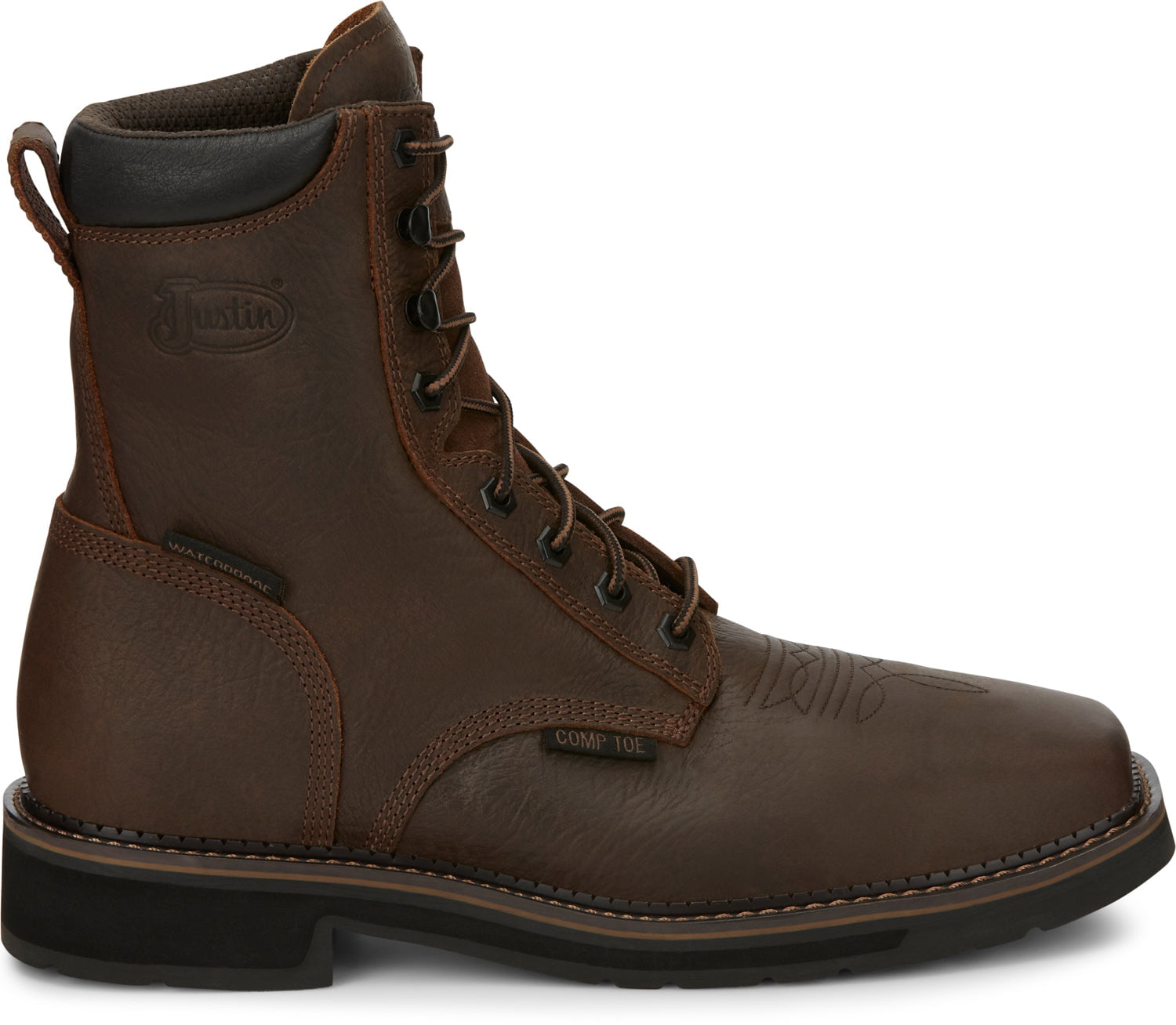 Justin 8in WP CT Mens Rustic Driller Leather Work Boots 10D
