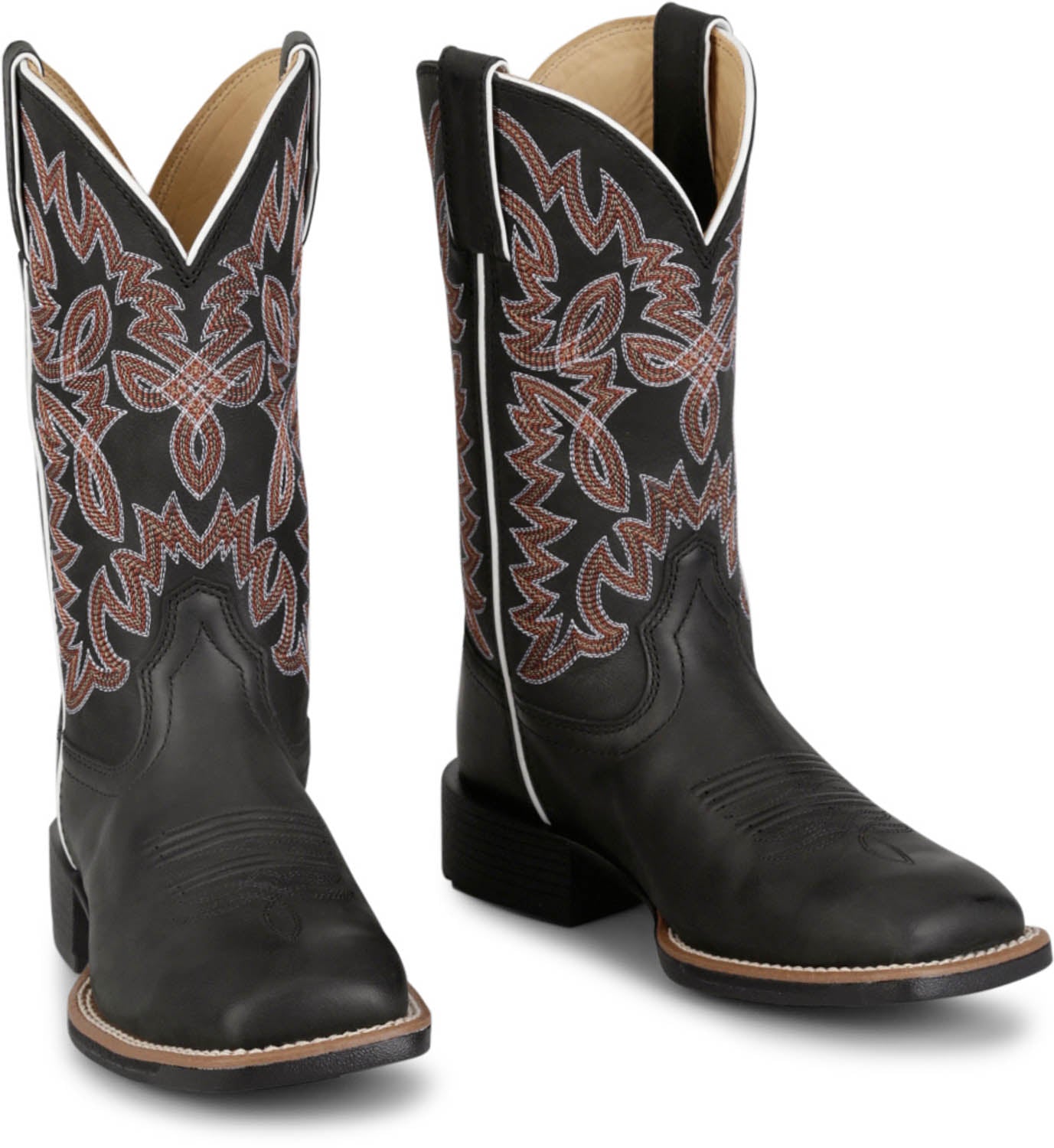 Justin Boots believe in continuing tradition and that is reflected in the durable, comfortable, authentic western and work boots they create. These cowboy boots feature goat leather vamp and leather shaft, wide square toe, j-flex removable ortholite insole and much more as listed in our bullet points below. Wear these cowboy boots with pride!