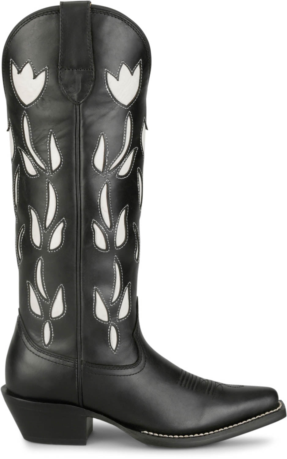 Justin Womens May 15in Western Black Cowhide Cowboy Boots