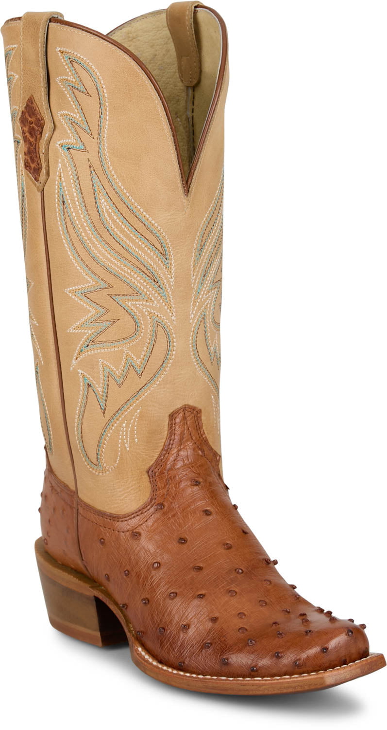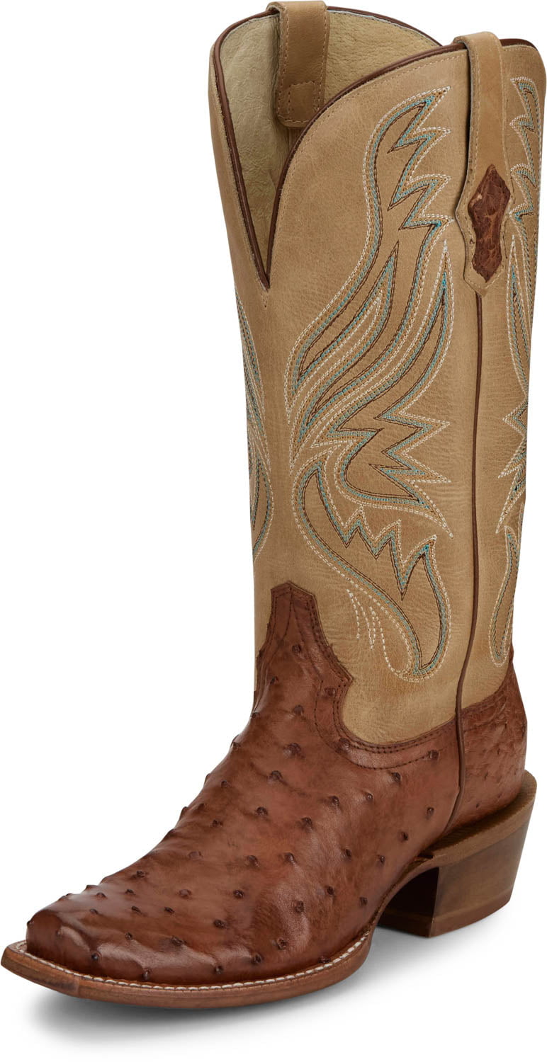 Tony Lama Womens Zaire Cognac Full Quill Ostrich Cowboy Boots