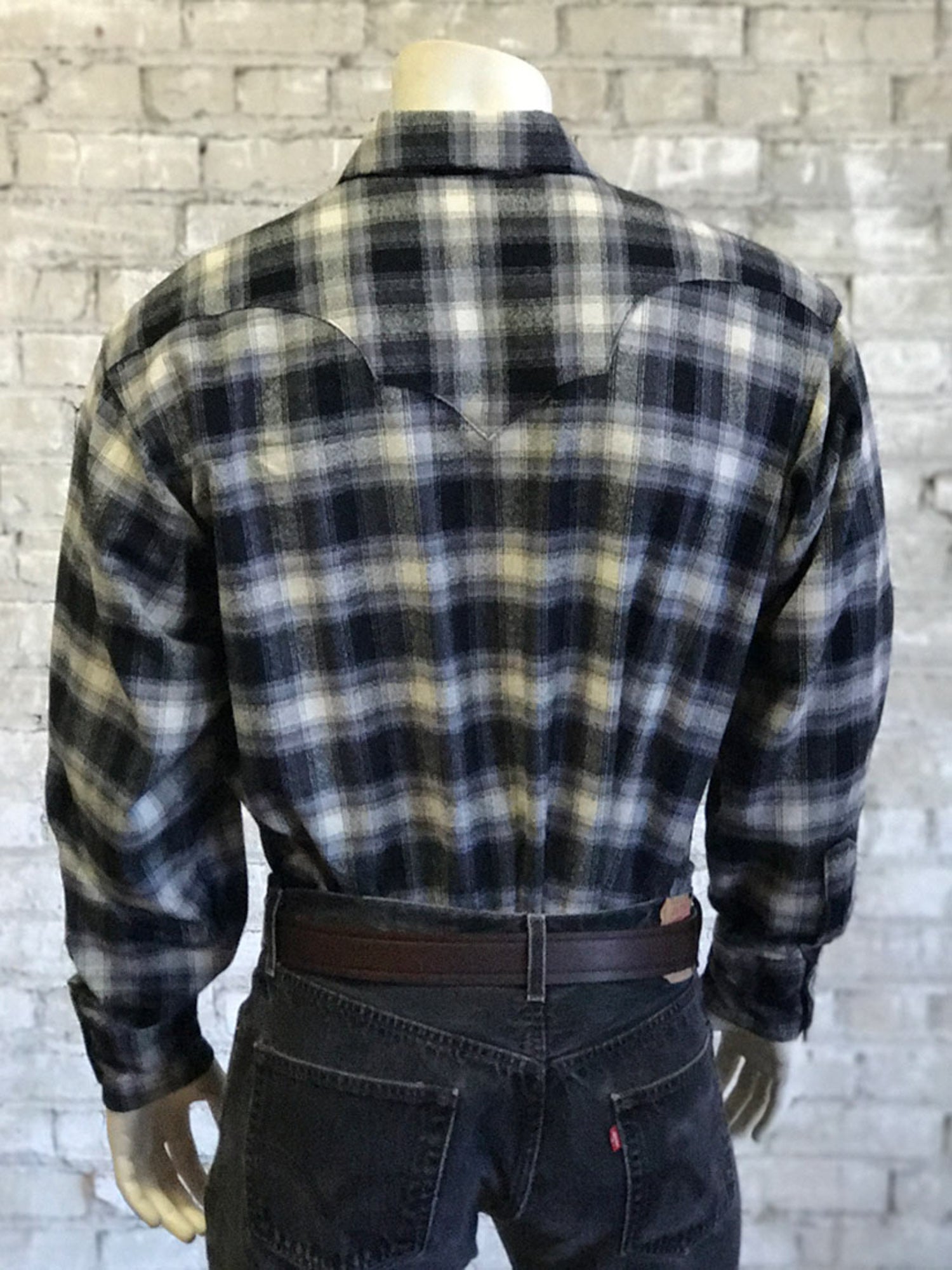 Rockmount Mens Black/Grey 100% Cotton Flannel Plaid Western L/S Shirt