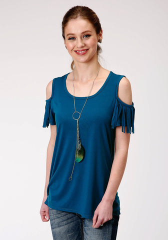 Roper Womens Navy Blue Poly/Rayon Cold Shoulders S/S T-Shirt