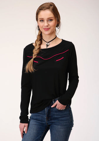Roper Girls Kids Pink Poly/Rayon Life Is Too Short L/S T-Shirt