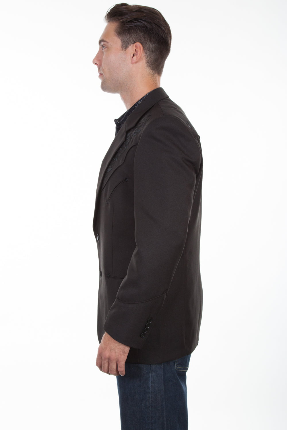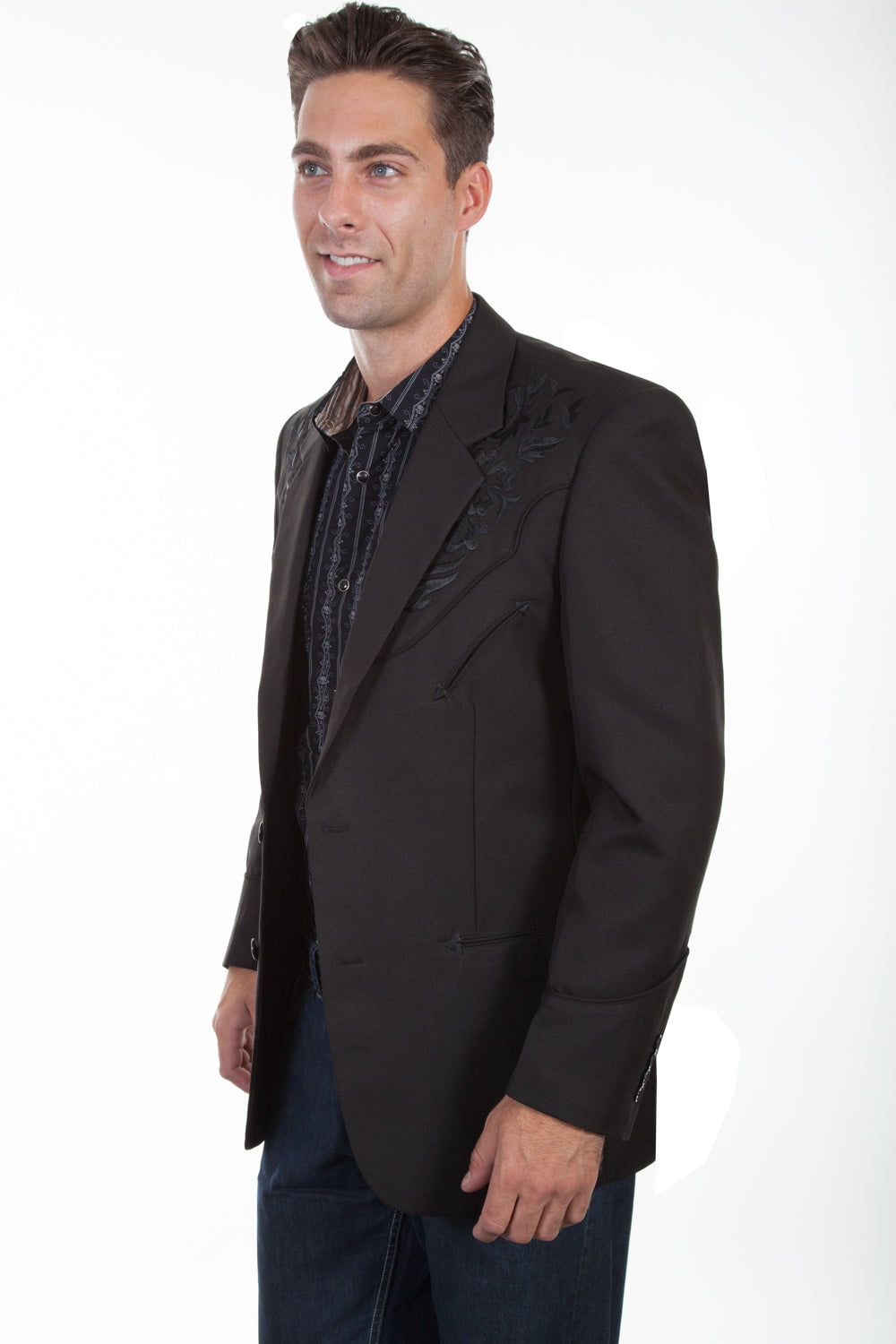 • 100% Polyester Get into the cowboy spirit with Scully's Western Apparel line. This item, designed with 100% polyester, features 100% polyester button front blazer and floral tonal embroidery ( front/back ) . When it comes to your comfort on the range or other occasions, Scully is your choice.