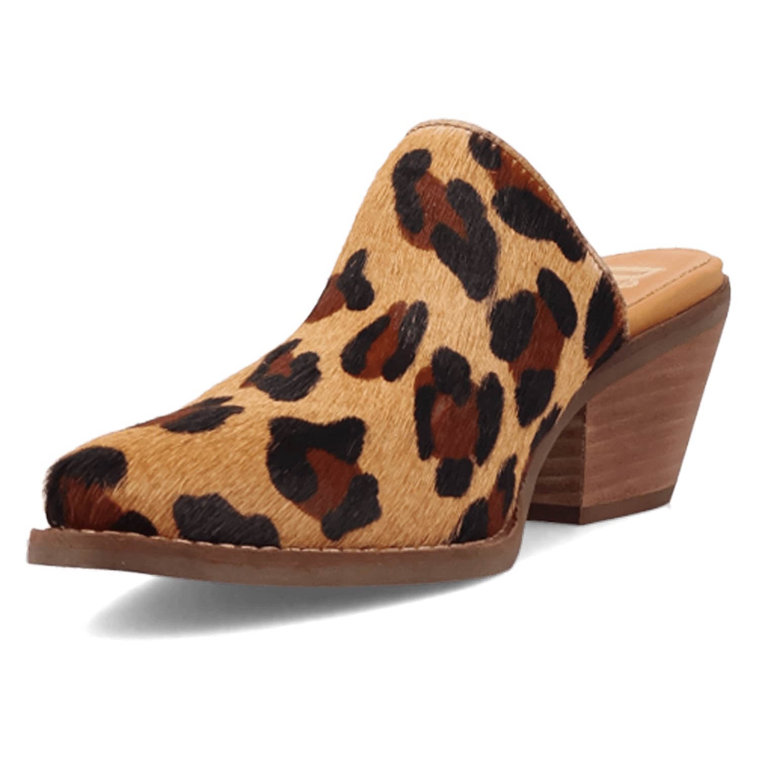 Dingo Womens Calico Leopard Hair-on-Hide 2in Heel Mules Shoes