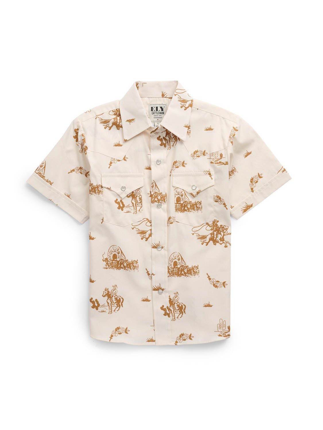 Ely and Walker Kids Boys Cowboy Print Snap Ecru 100% Cotton S/S Shirt