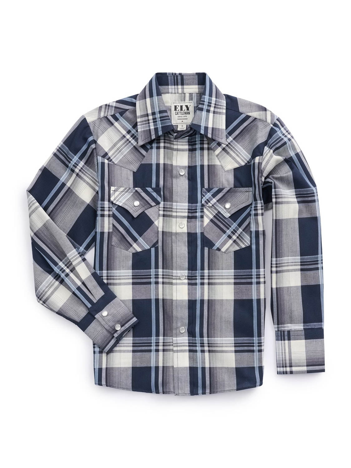 Ely and Walker Kids Boys Textured Plaid Western Navy/Rust Poly/Cotton L/S Shirt