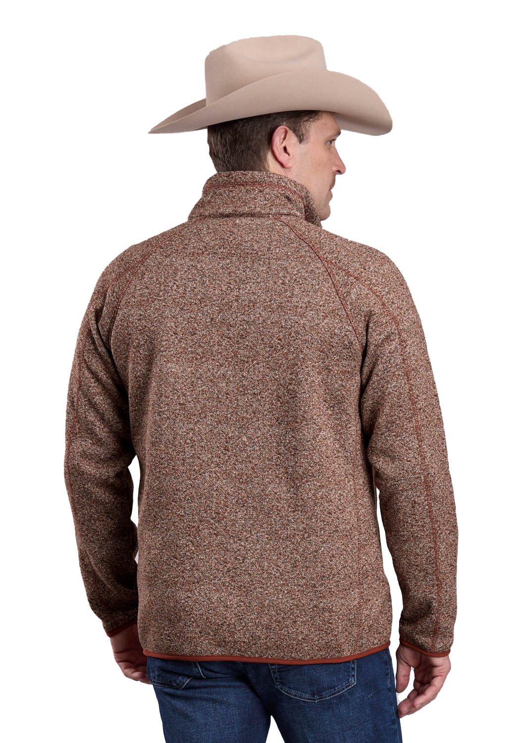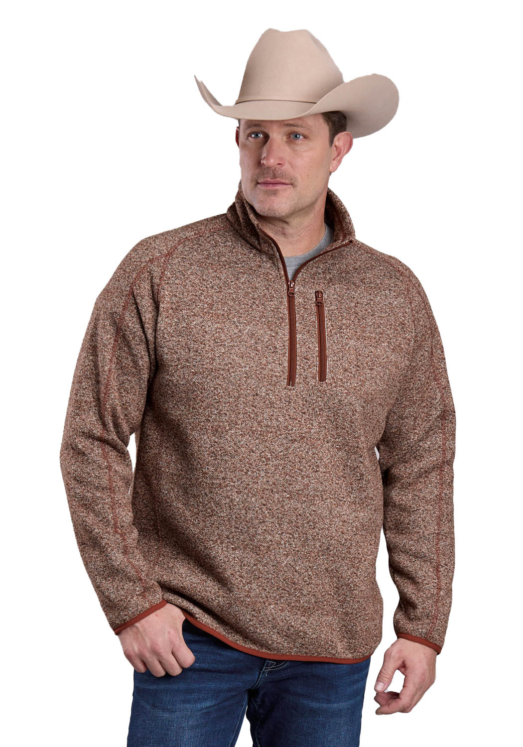Stetson Mens 1/4 Zip Bonded Rust 100% Polyester Pullover Sweater