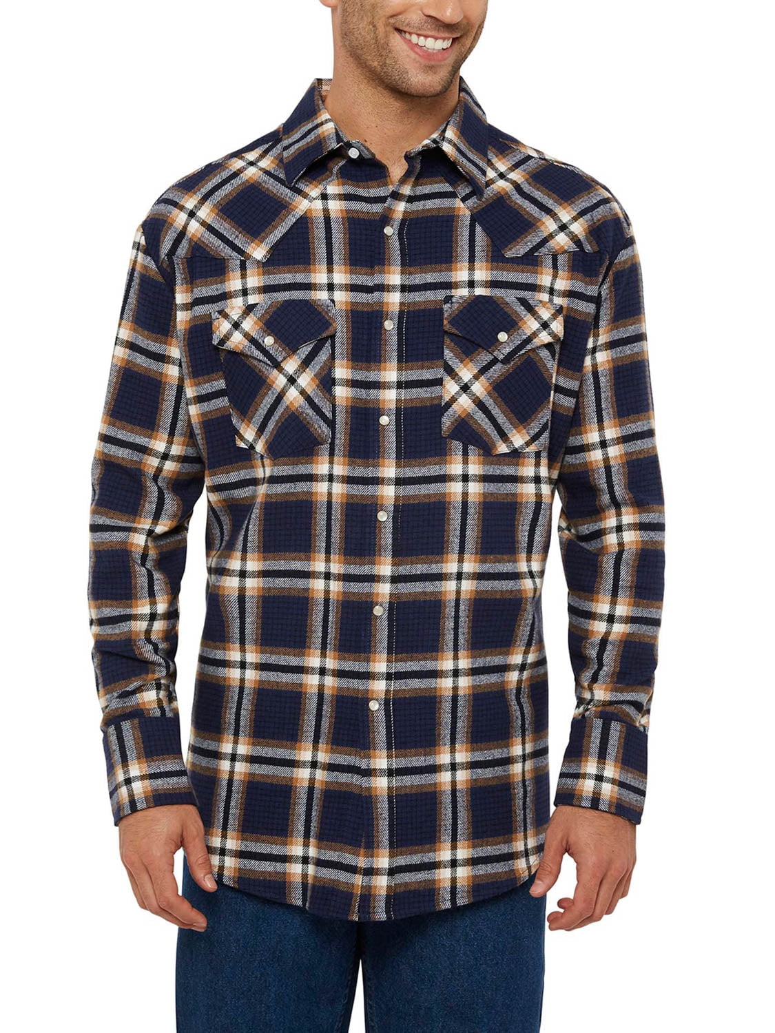 Ely and Walker Mens Western Brawny Flannel Navy 100% Cotton L/S Shirt