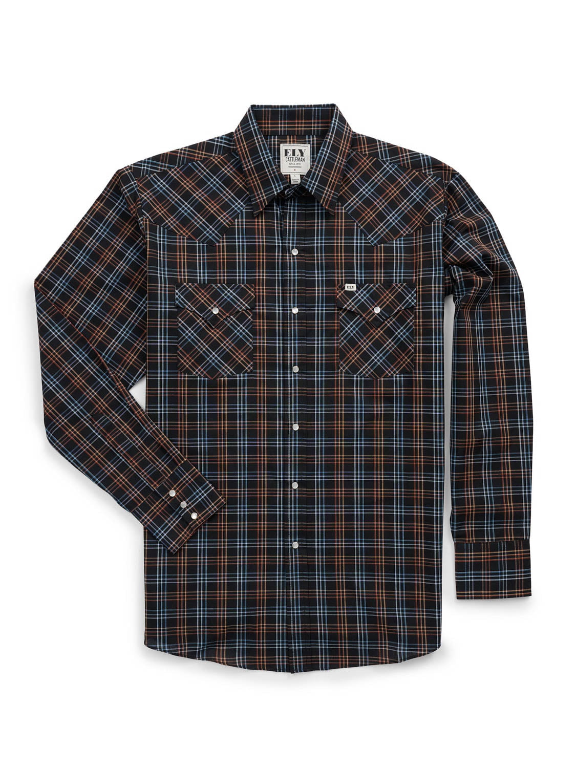• 65% Polyester/35% Cotton material Since 1878, Ely & Walker has been on a mission to deliver the highest quality product to value-conscious consumers like yourself. This l/s shirt features 65% polyester/35% cotton material, two front western flap pockets with snaps, pearlized snaps and much more as listed in our bullet points below. Layer up in this versatile long sleeve shirt.