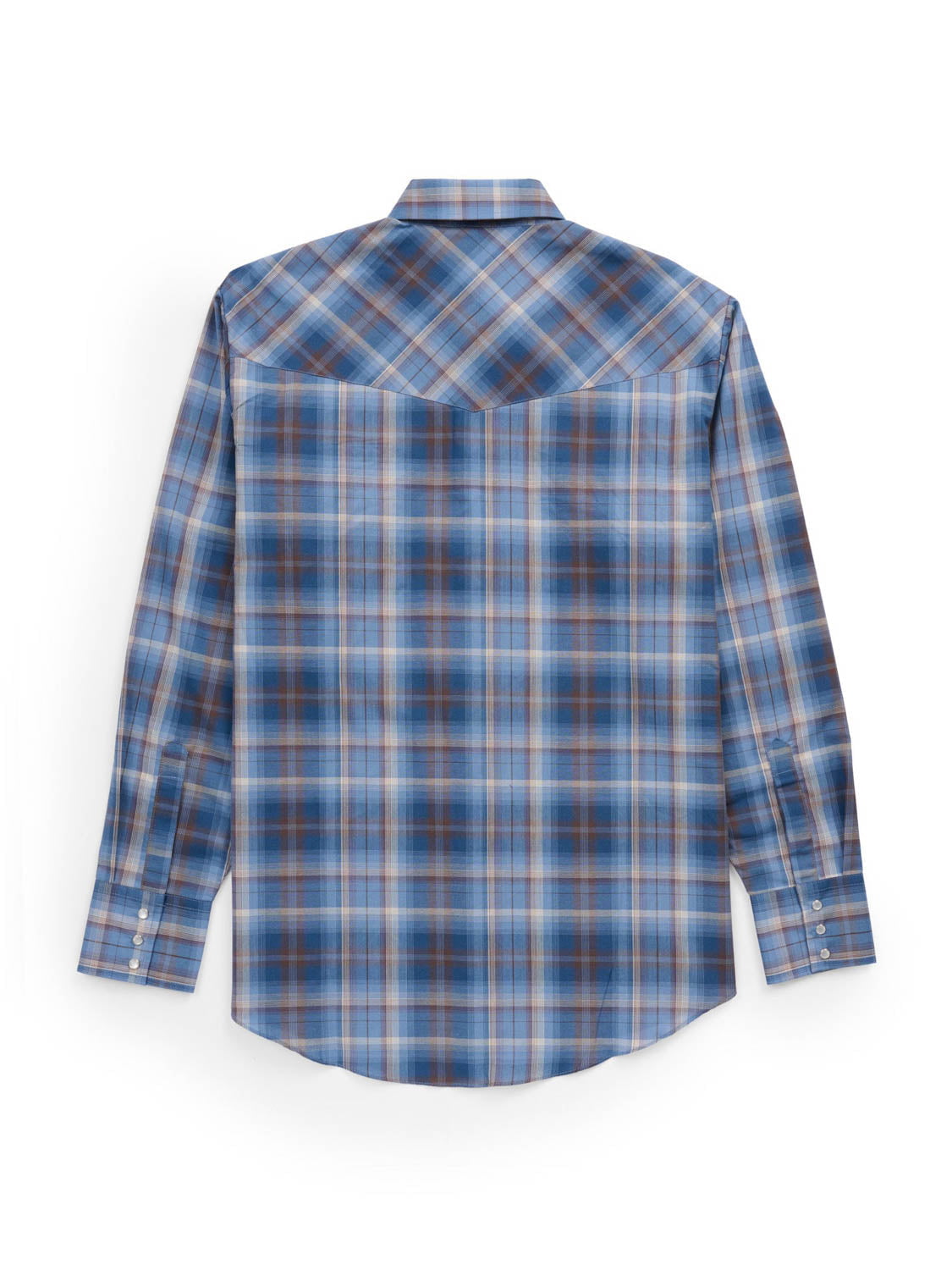Ely and Walker Mens Western Textured Plaid Navy Poly/Cotton L/S Shirt