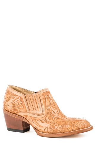 Stetson Tooled Womens Burnished Tan Leather Nina Ankle Boots