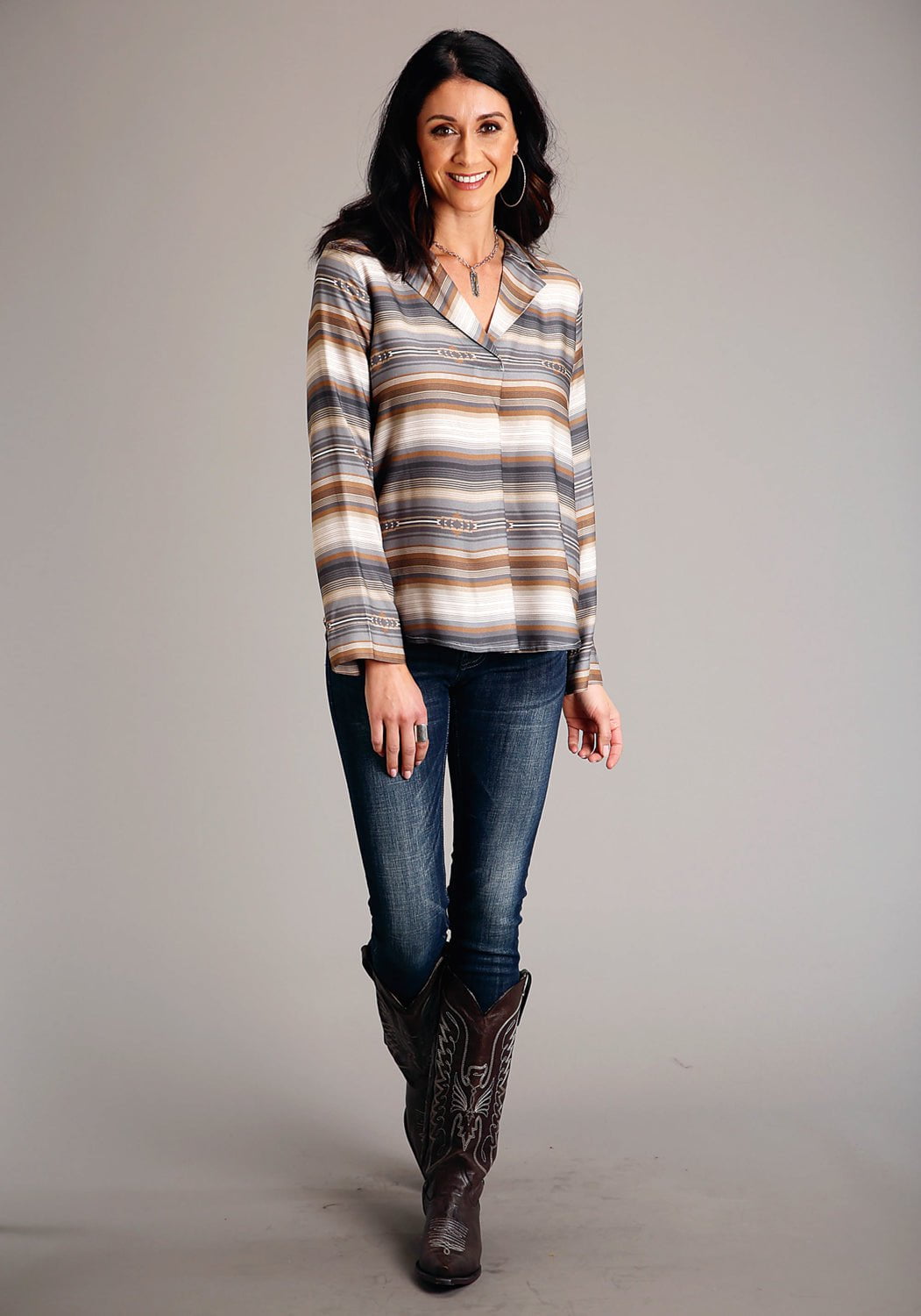Stetson Womens Desert Serape Brown 100% Rayon L/S Blouse