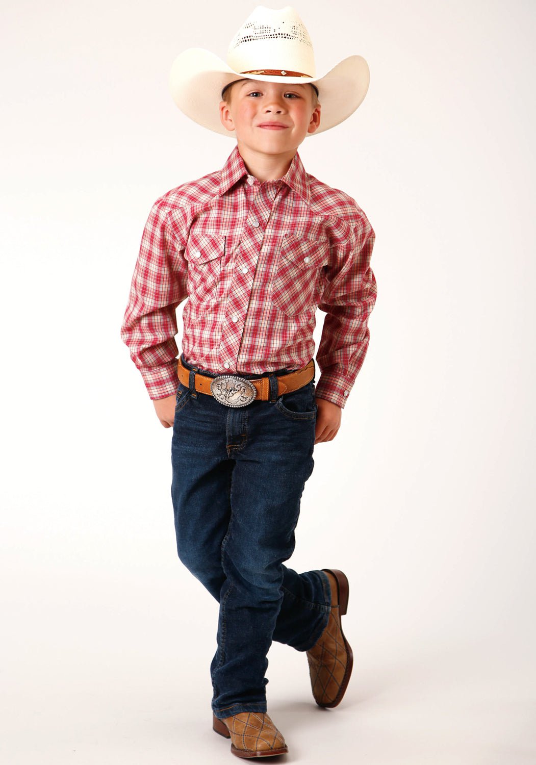 Roper Kids Boys Small Scale Plaid Red Multi Cotton Blend L/S Shirt