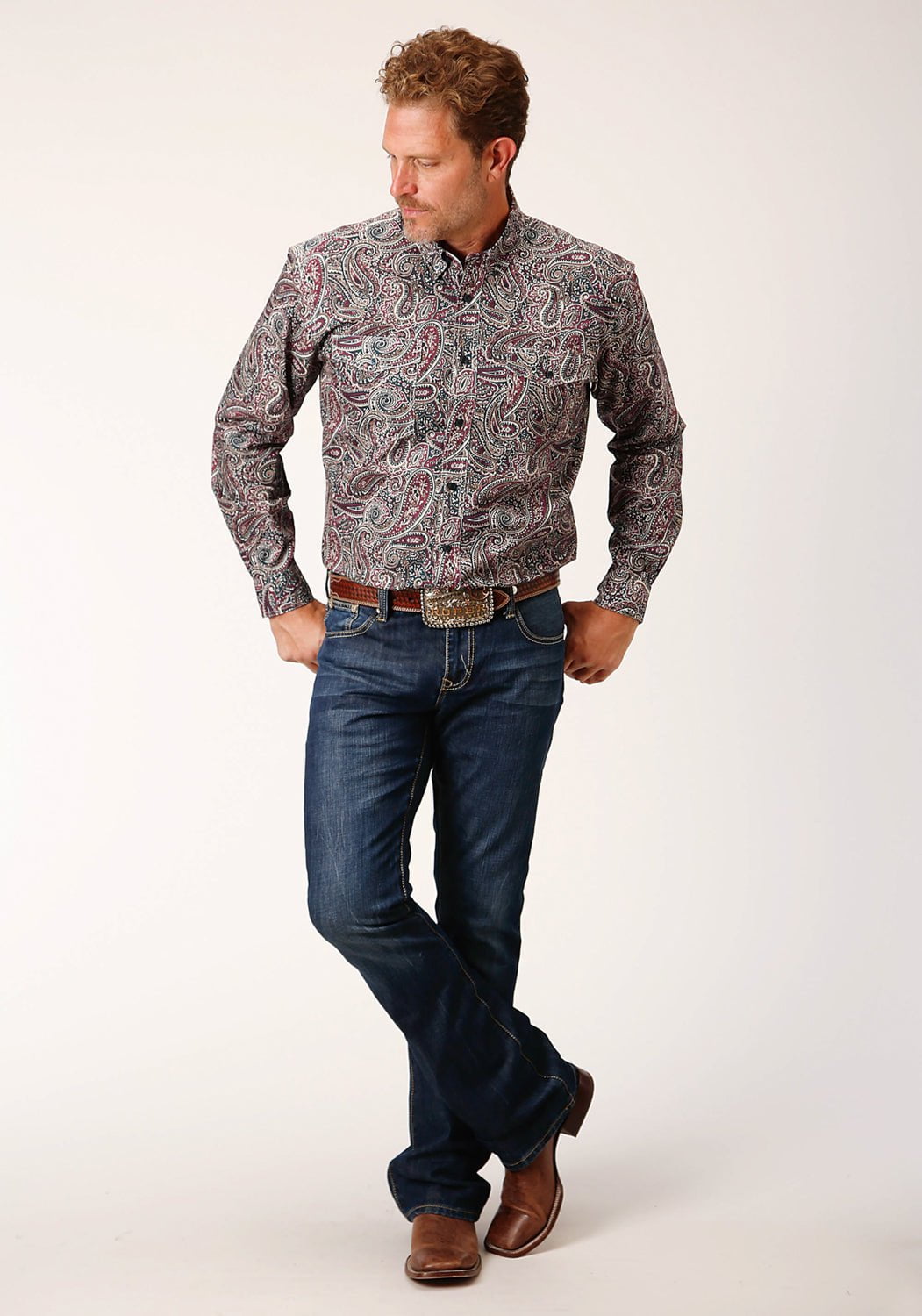 Roper Mens Old Time Paisley Multi-Color 100% Cotton L/S Shirt