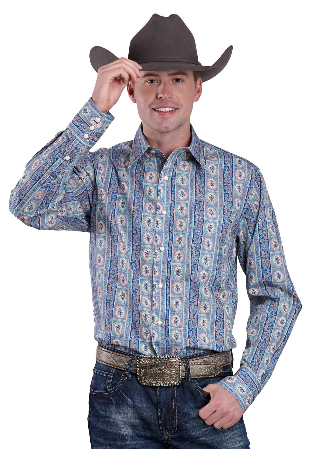 Tin Haul Mens Vintage Wallpaper Print Blue 100% Cotton L/S Shirt – The Western Company