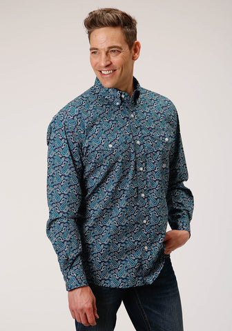 Roper Mens Blue 100% Cotton Canyon Paisley BD L/S 1 Pkt Shirt