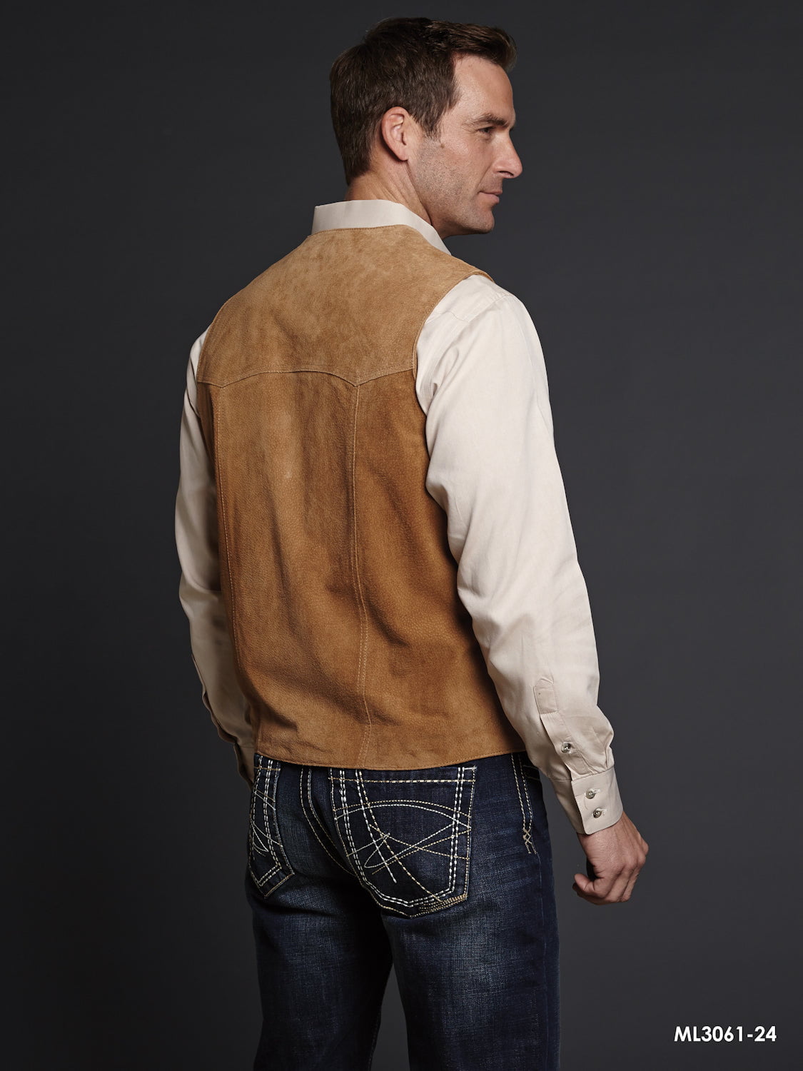 • Boar Suede Leather This authentic western style, light brown leather mens snap front vest features a snap front, polyester lining and 2 front pockets. For the best in modern, high-quality western outerwear, Cripple Creek is the brand to trust.
