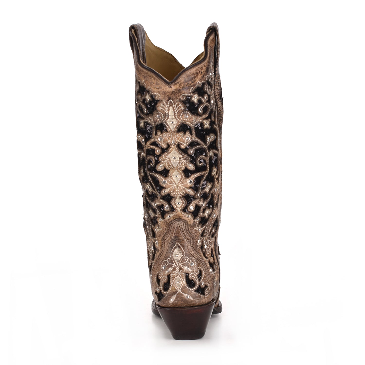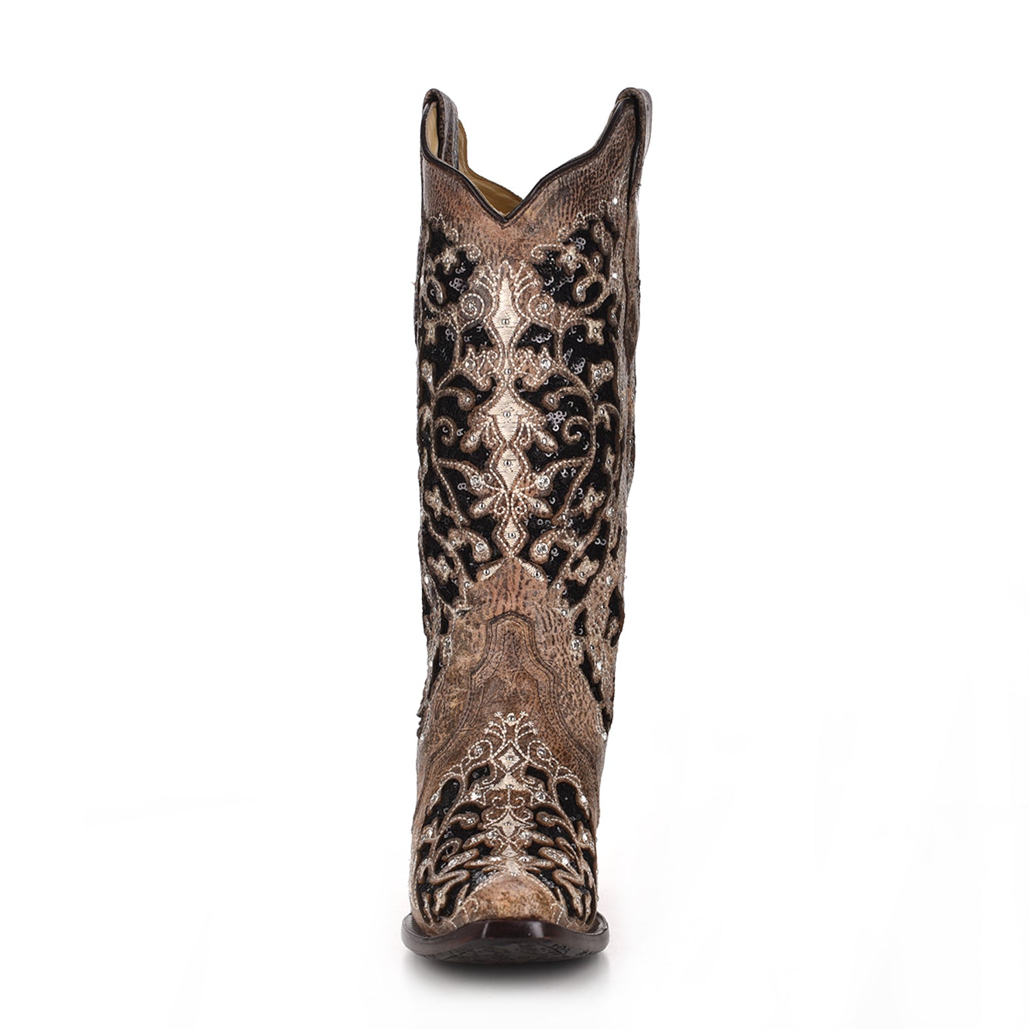 Corral Womens A3569 Brown Leather 12in Crystal Black Glitter Fashion Boots 6.5 W