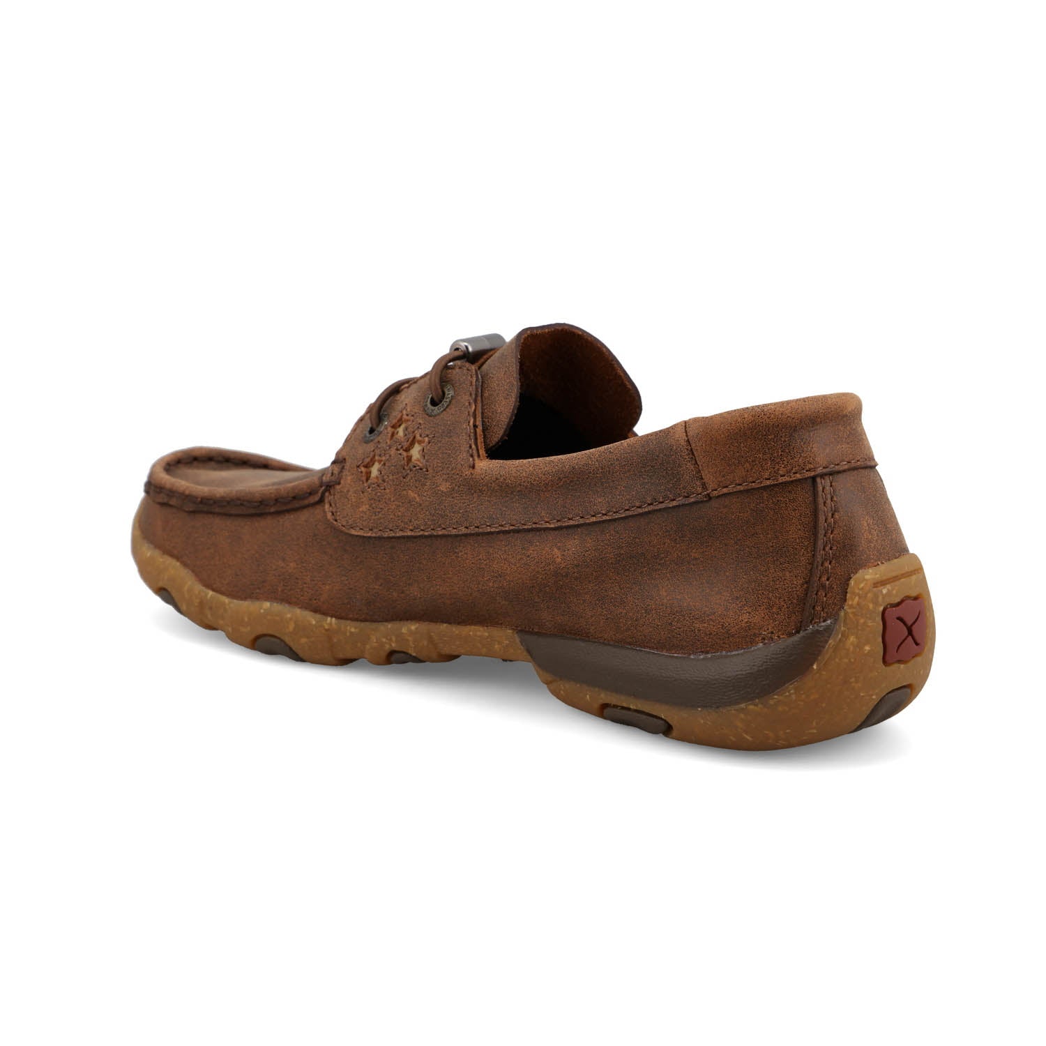 Twisted X Womens Driving Moc Brown/Cream Leather Boat Shoes
