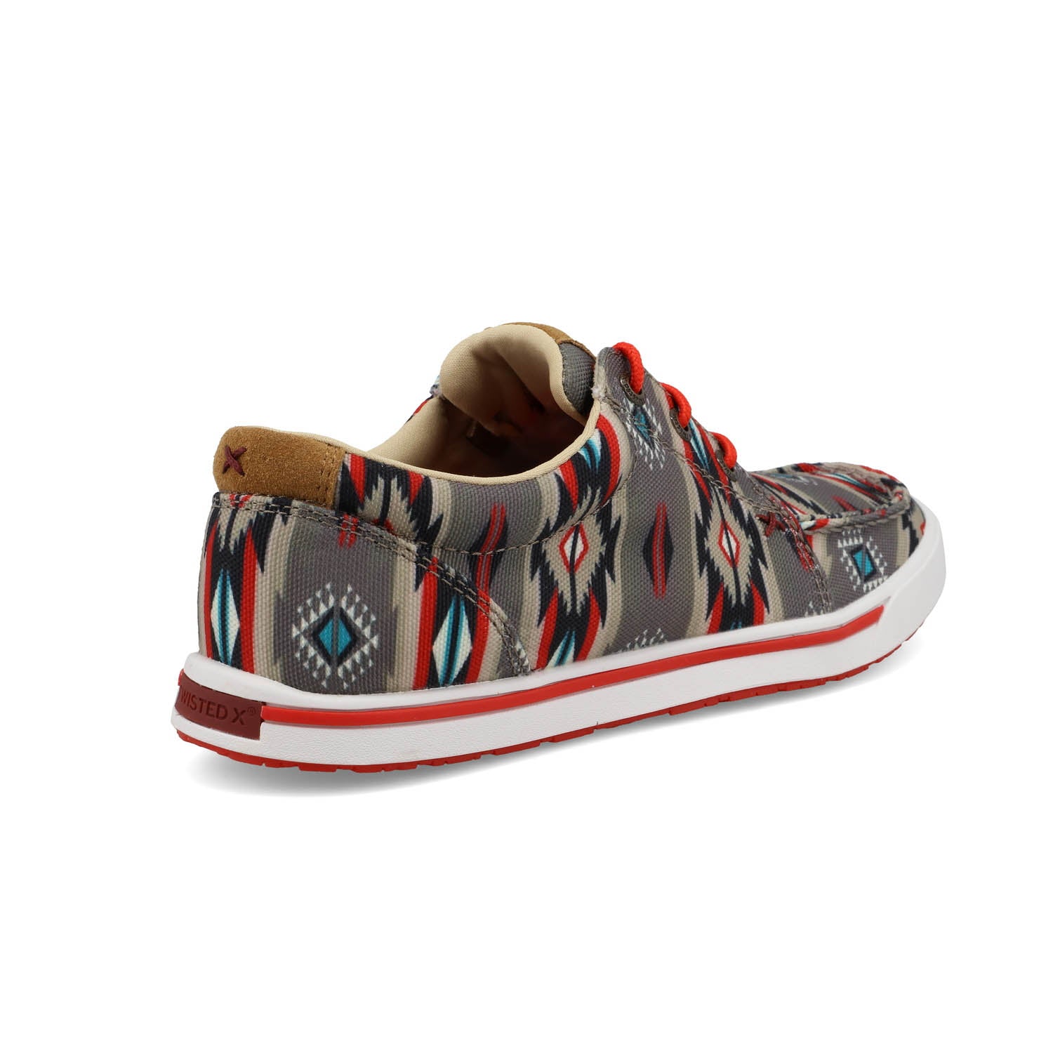 • Textile upper Always striving, never compromising. Twisted X is dedicated to making better boots and it shows. The Women's Kicks assortment, a Twisted X spin on classic designs, provides you with the look you desire and materials, patterns, and hues that stand out! These Kicks mix sophistication, quality, and unparalleled comfort, plus a fabric upper, Blend85 recycled foam footbed, and a molded rubber outsole made with reused rice husk, a green ag byproduct. Put on display these Kicks for the ultimate combination of style and ease that won't go unnoticed! These are a great athletic footwear choice.