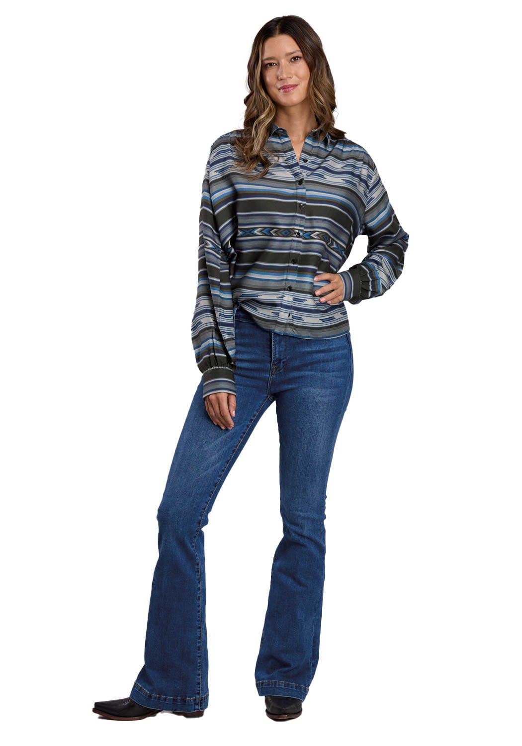 • 100% Viscose materials For high quality, traditional, western apparel with lasting style, look no further than Stetson. This s/l blouse features 100% viscose materials, drop shoulders, button down front and much more as listed in our bullet points below. Layer up in this versatile long sleeve shirt.