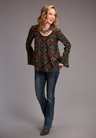 Stetson Womens Brown Rayon/Nylon Challis Blanket L/S Pullover Blouse