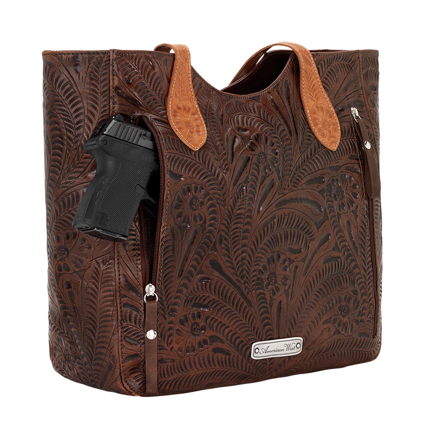 American West Womens Annies Secret Collection Zip Dark Brown Leather Tote Bag OS