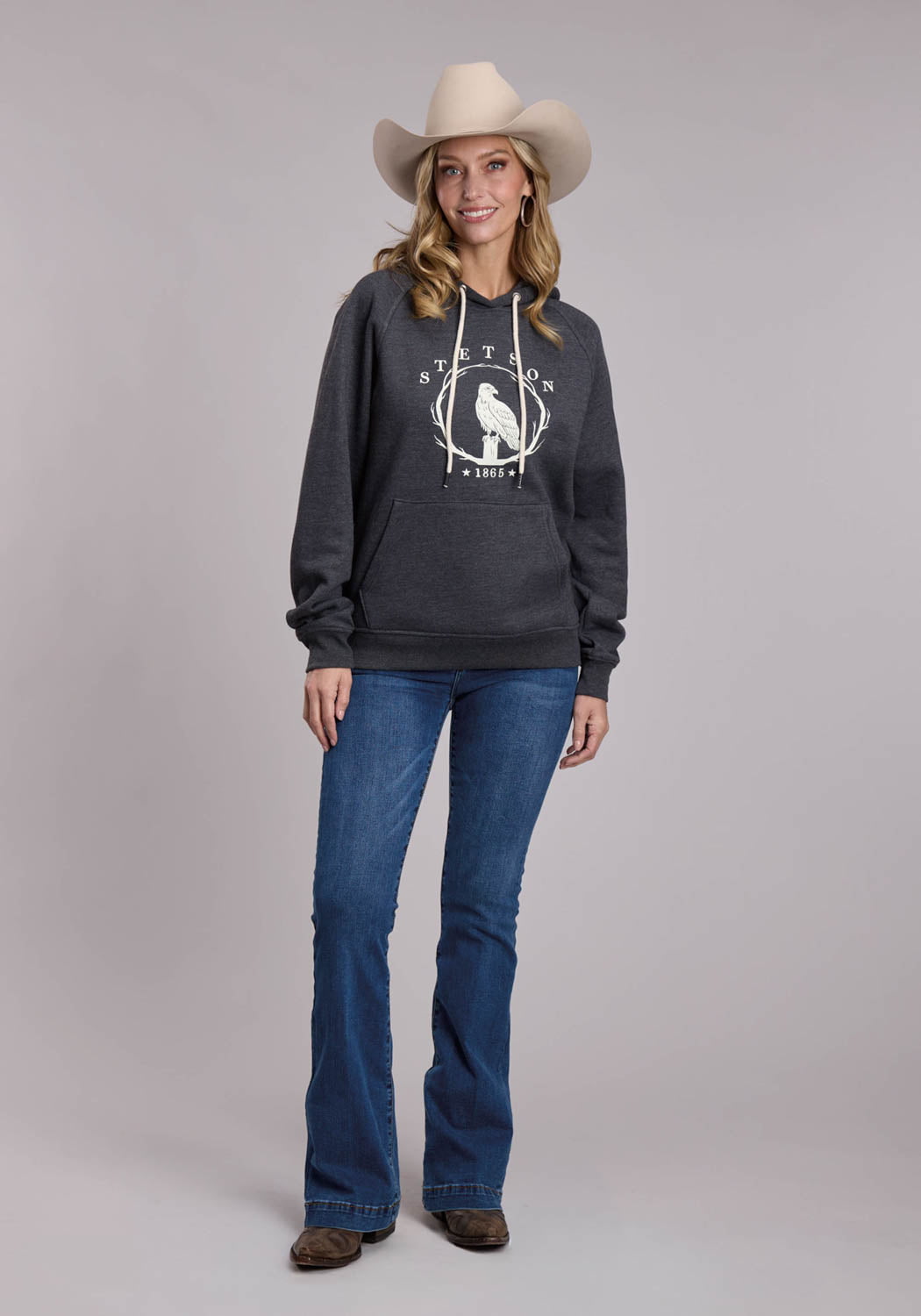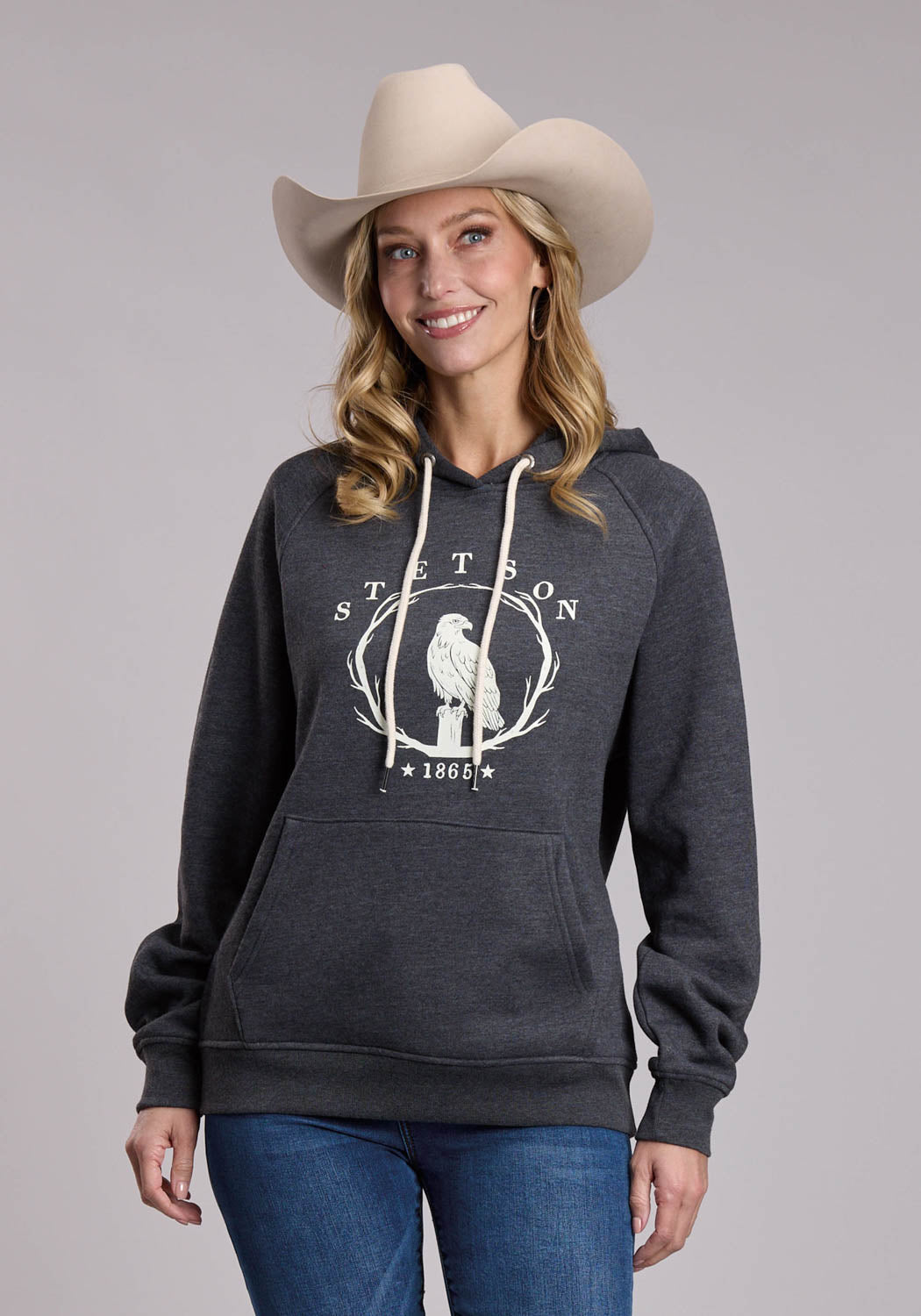Stetson Womens 1865 Eagle on Branch Heather Black Poly/Rayon Hoodie