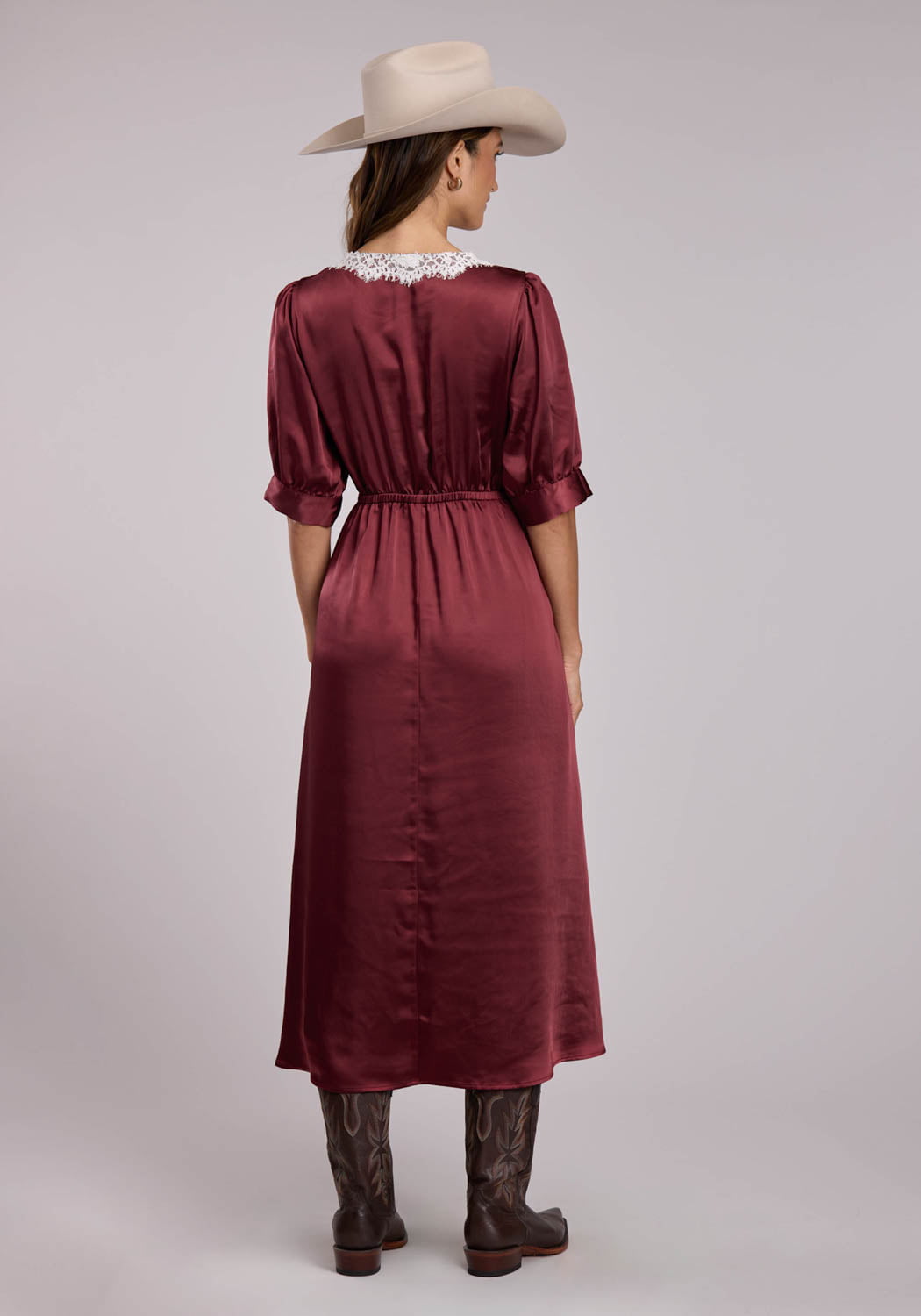 Stetson Womens Lace Applique Satin Wine Polyester Blend S/S Dress