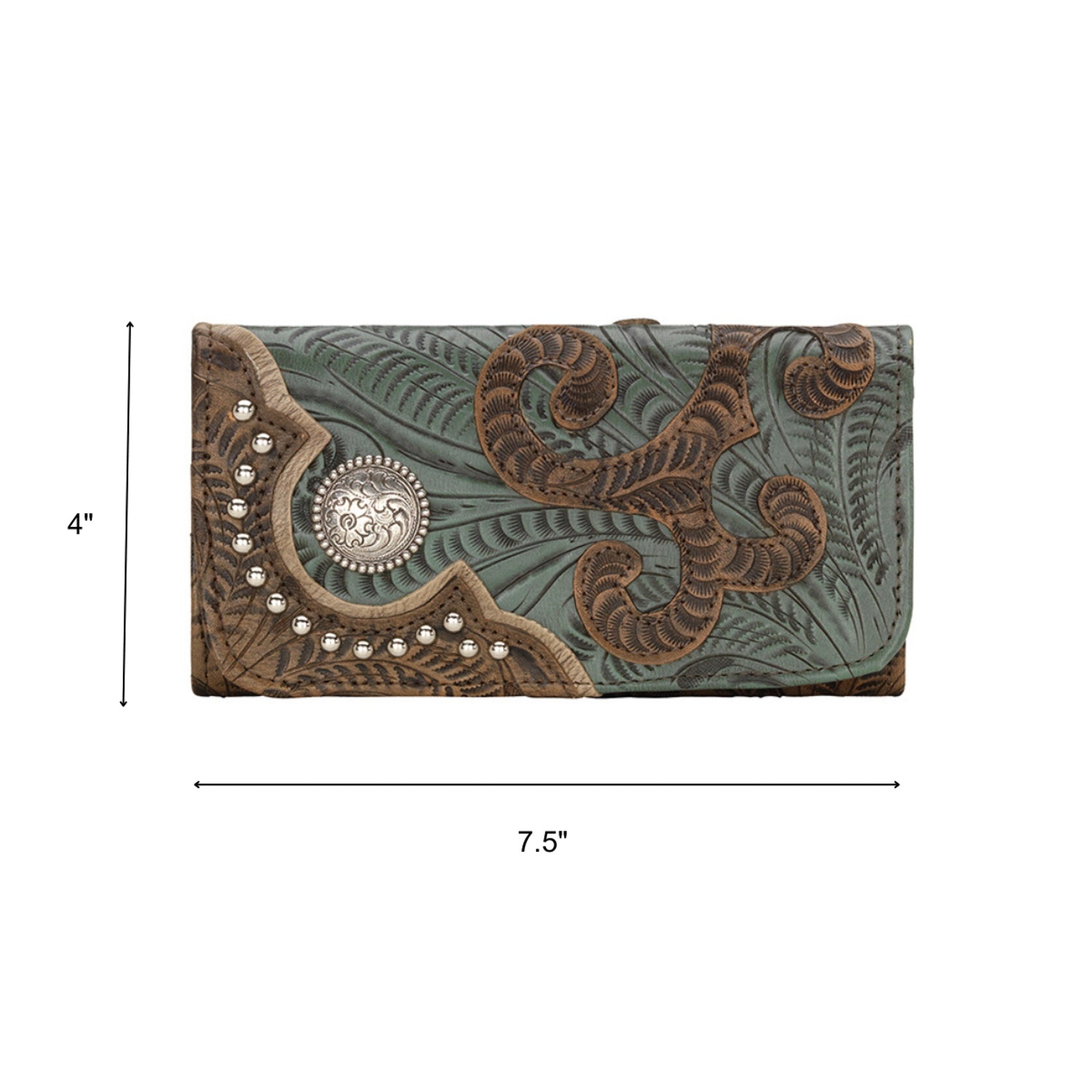 American West Annies Secret Collection Charcoal/Turquoise Leather Trifold Wallet OS