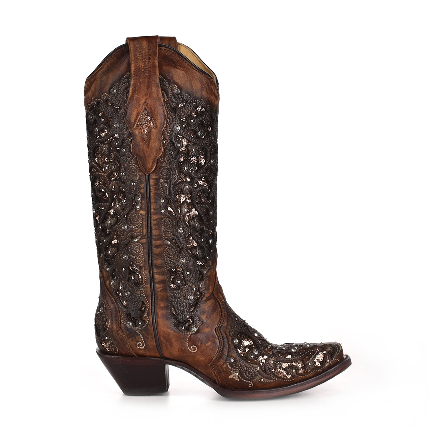 Corral Womens Shimmer Inlay Cowboy Boots Leather Cognac 8.5 M
