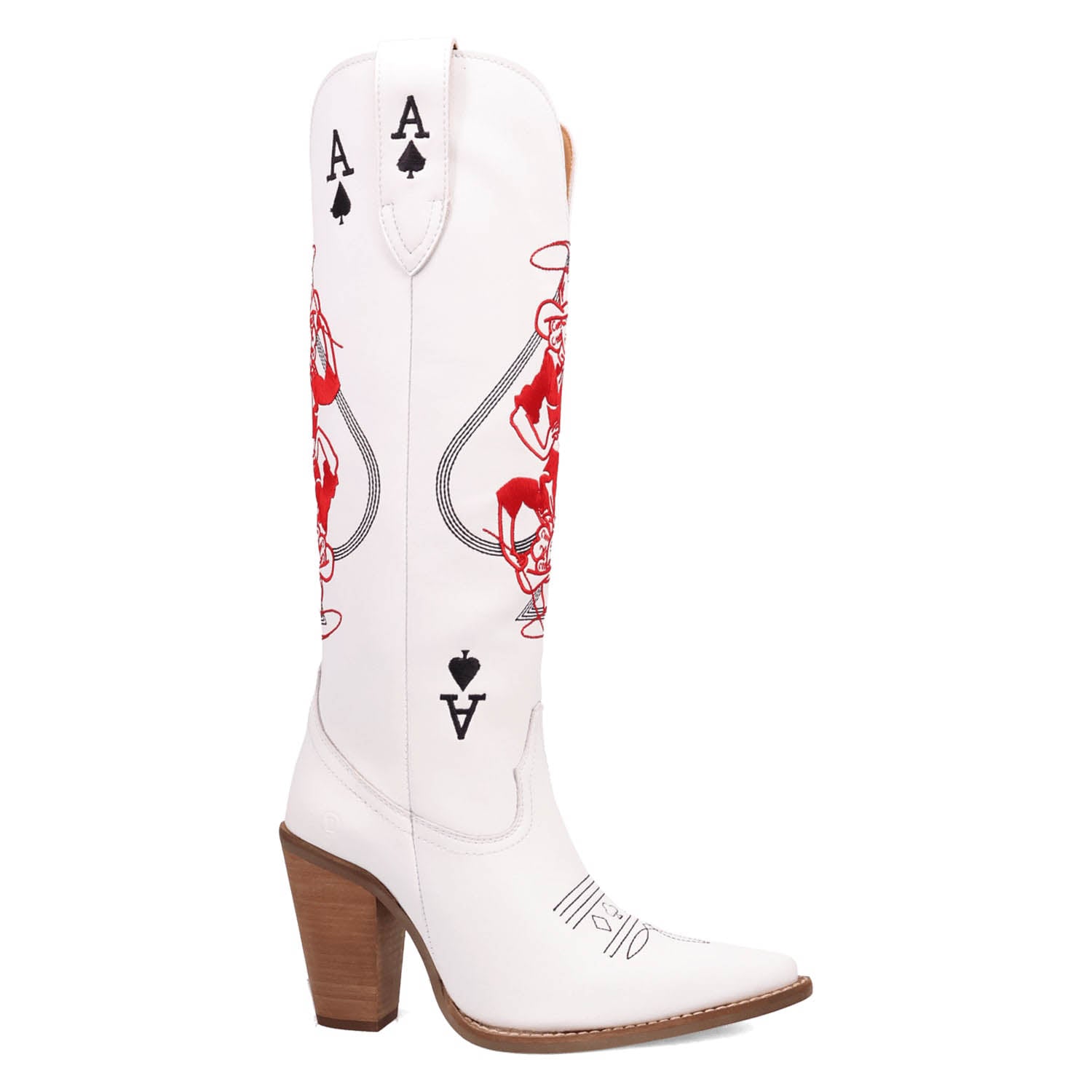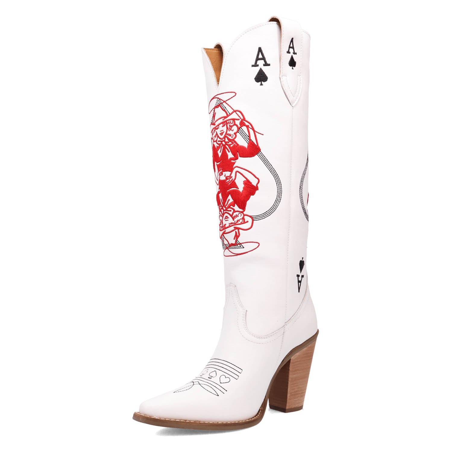 Dingo Womens Ace Of Spades White Leather Cowboy Boots 8 M