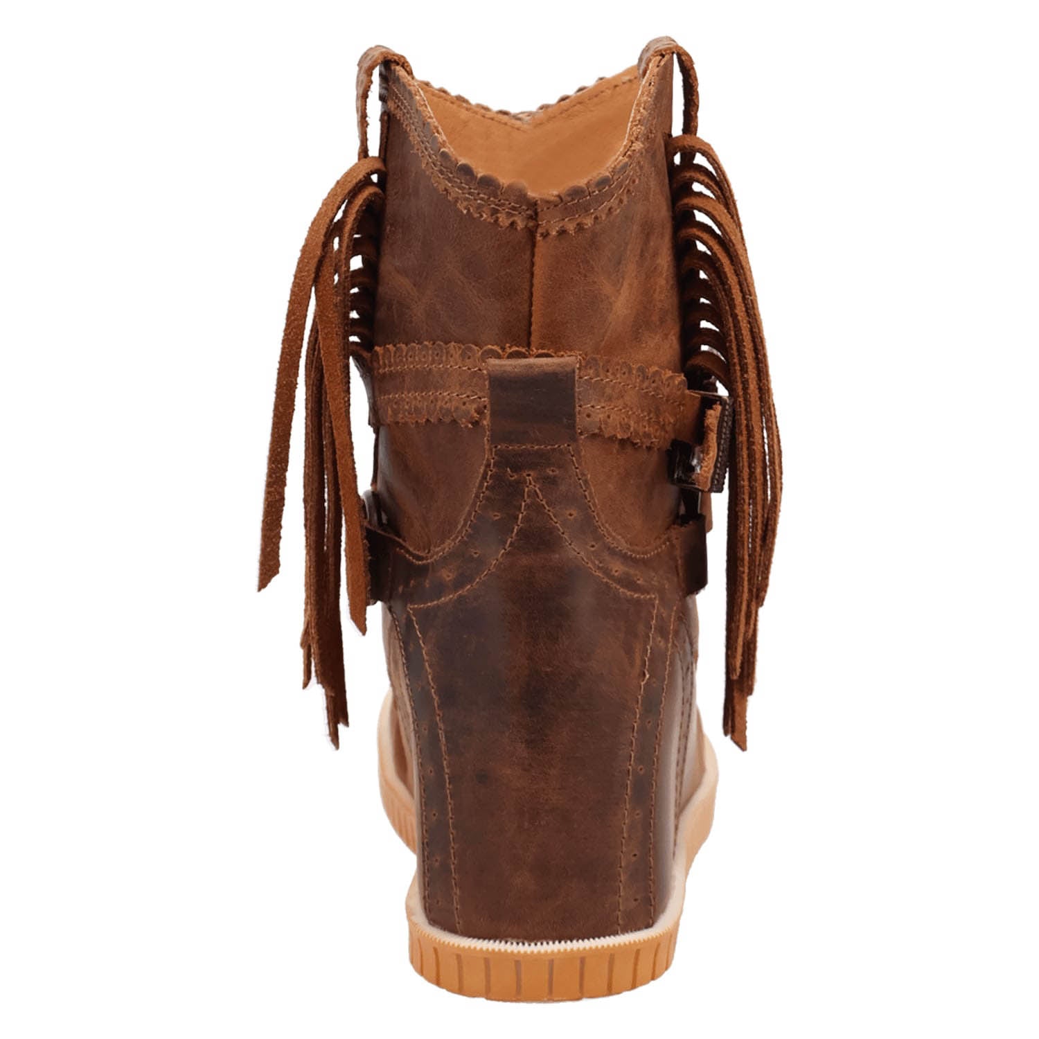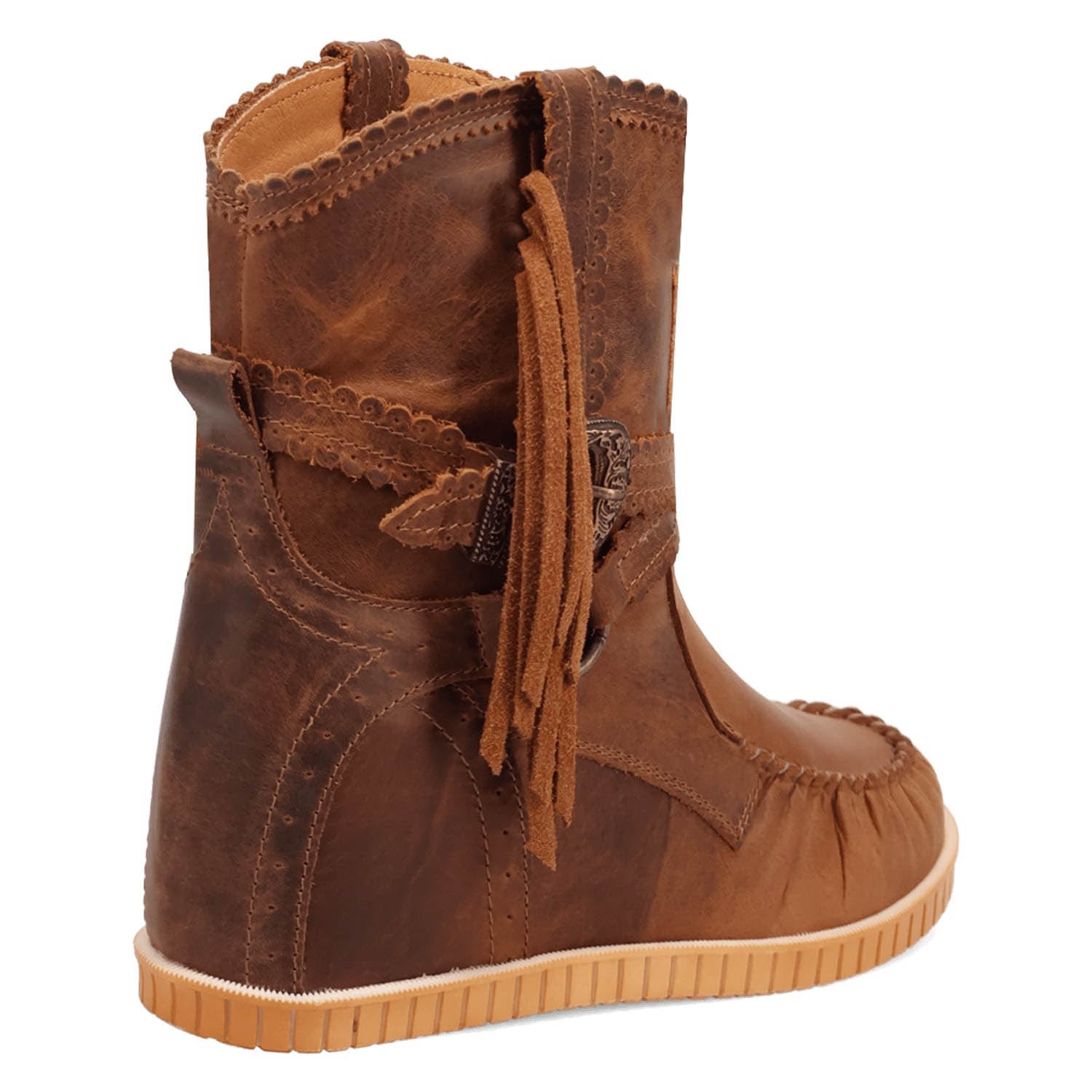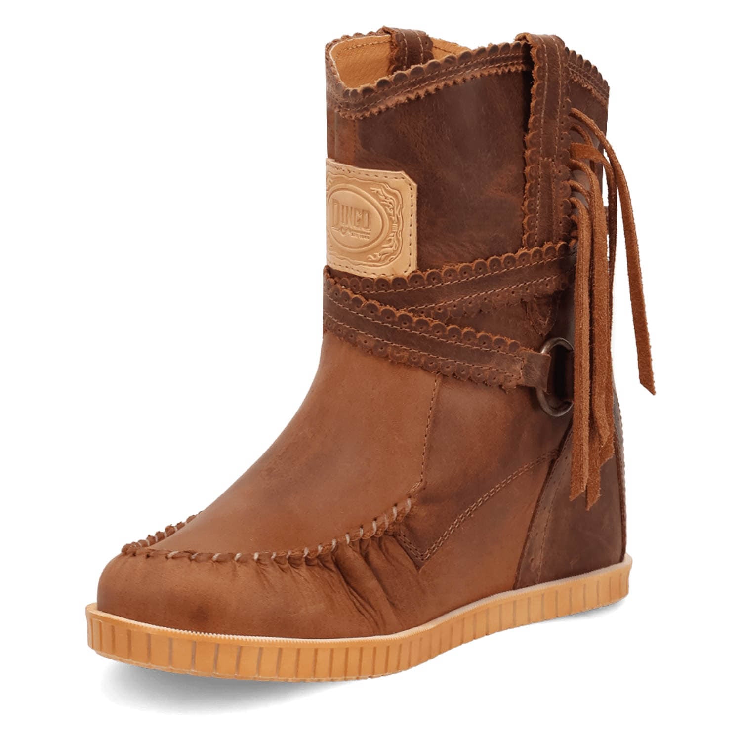 • Leather materials Blending the past and the present, Dingo boots stand out in the crowd. Introducing Montauk � the moccasin-style bootie that fuses classic design with modern sophistication. Adorned with playful fringe and featuring an inside wedge for subtle lift, Montauk offers both stylish flair and practical comfort. The fringe adds a dynamic, bohemian touch, while the wedge provides added support and elevation. Ideal for those who appreciate a blend of heritage-inspired style and contemporary enhancements, Montauk is perfect for any occasion. Made from premium quality materials, these stylish boots will add a polished look to your boot collection.