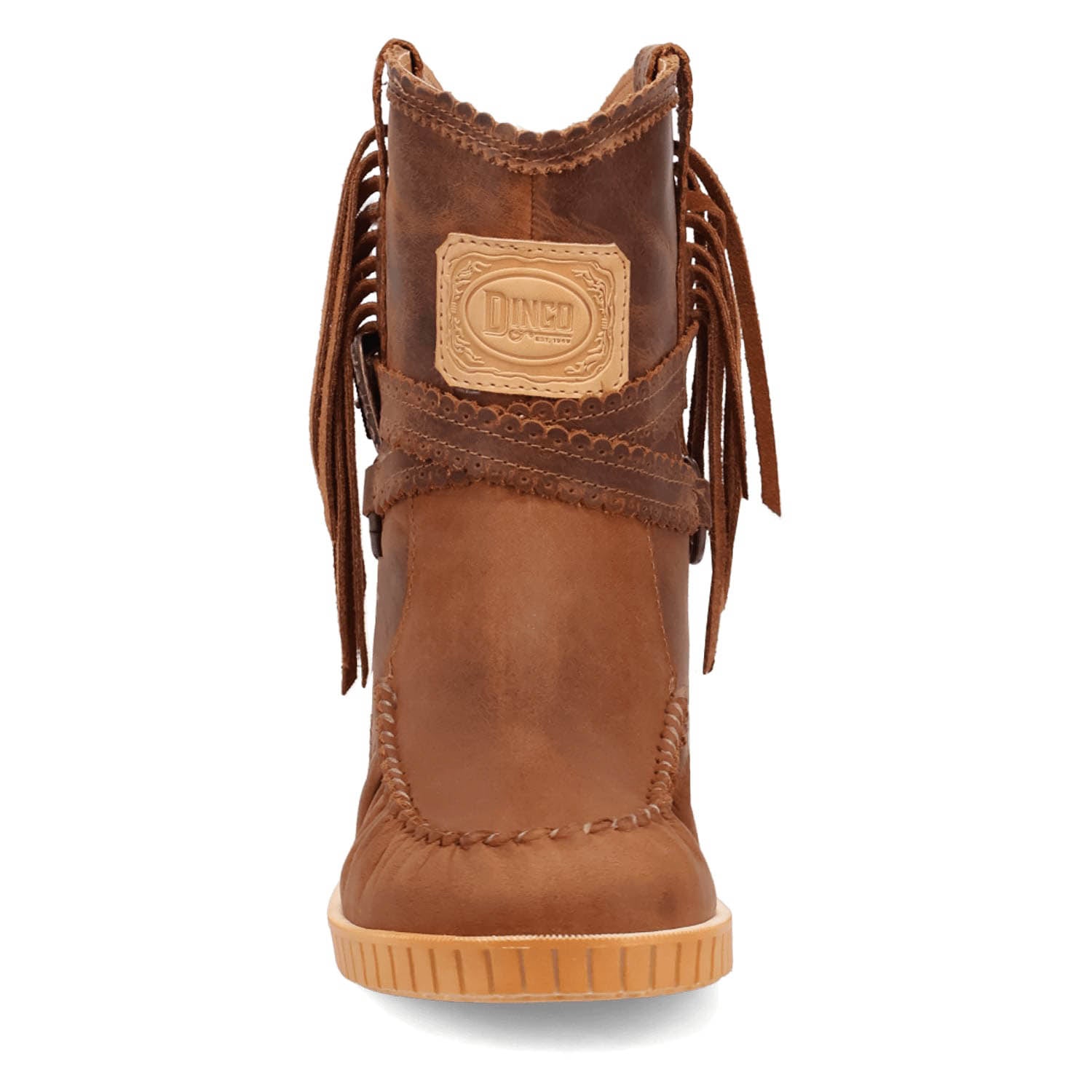 • Leather materials Blending the past and the present, Dingo boots stand out in the crowd. Introducing Montauk � the moccasin-style bootie that fuses classic design with modern sophistication. Adorned with playful fringe and featuring an inside wedge for subtle lift, Montauk offers both stylish flair and practical comfort. The fringe adds a dynamic, bohemian touch, while the wedge provides added support and elevation. Ideal for those who appreciate a blend of heritage-inspired style and contemporary enhancements, Montauk is perfect for any occasion. Made from premium quality materials, these stylish boots will add a polished look to your boot collection.