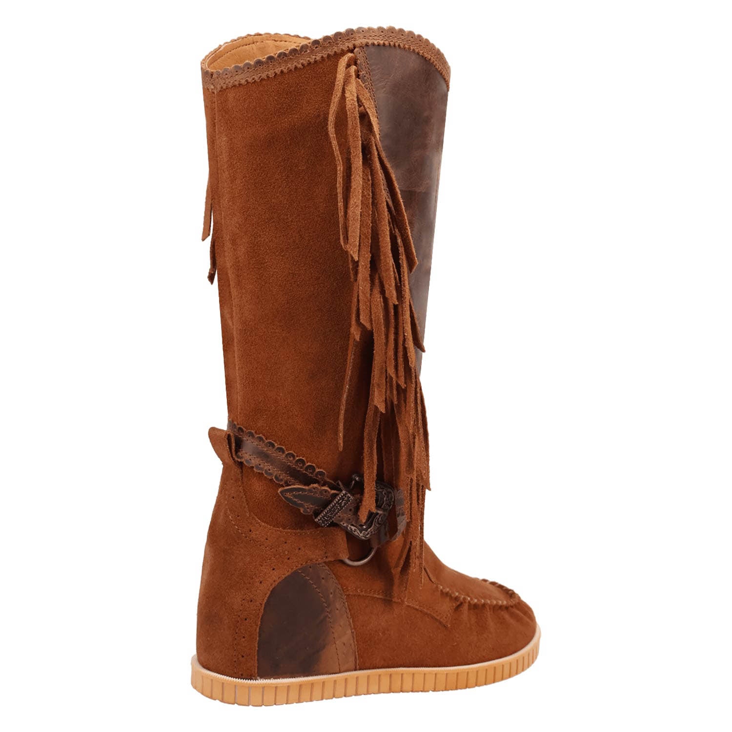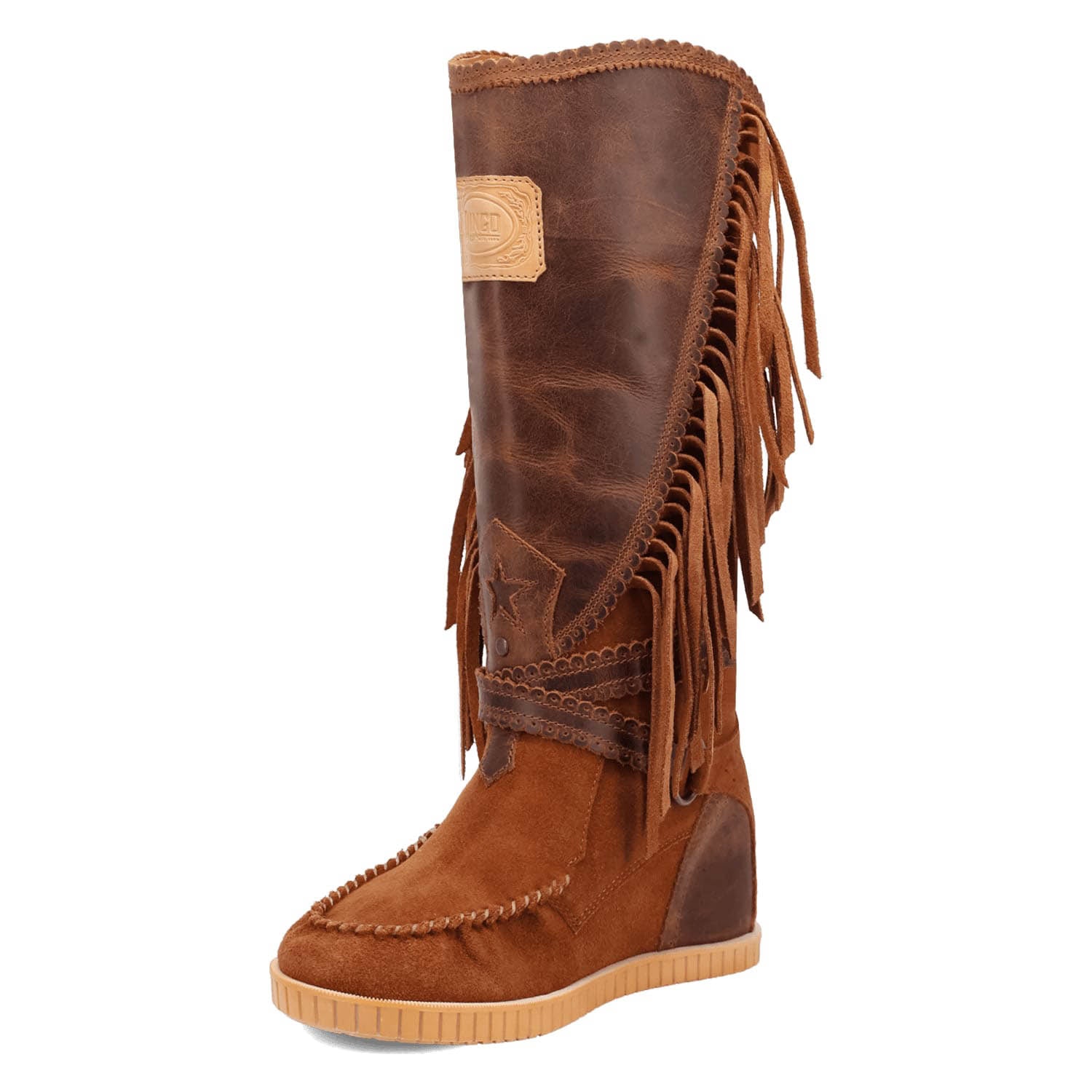 • Leather materials Blending the past and the present, Dingo boots stand out in the crowd. Introducing �Natchez� � the moccasin-style boot that blends classic design with modern comfort. Featuring playful fringe that adds a bohemian touch, Natchez also includes an inside wedge for a subtle lift and enhanced support. Perfect for those who love heritage-inspired fashion with a contemporary twist. Step into Natchez and experience the perfect balance of traditional charm and modern comfort. Made from premium quality materials, these stylish boots will add a polished look to your boot collection.
