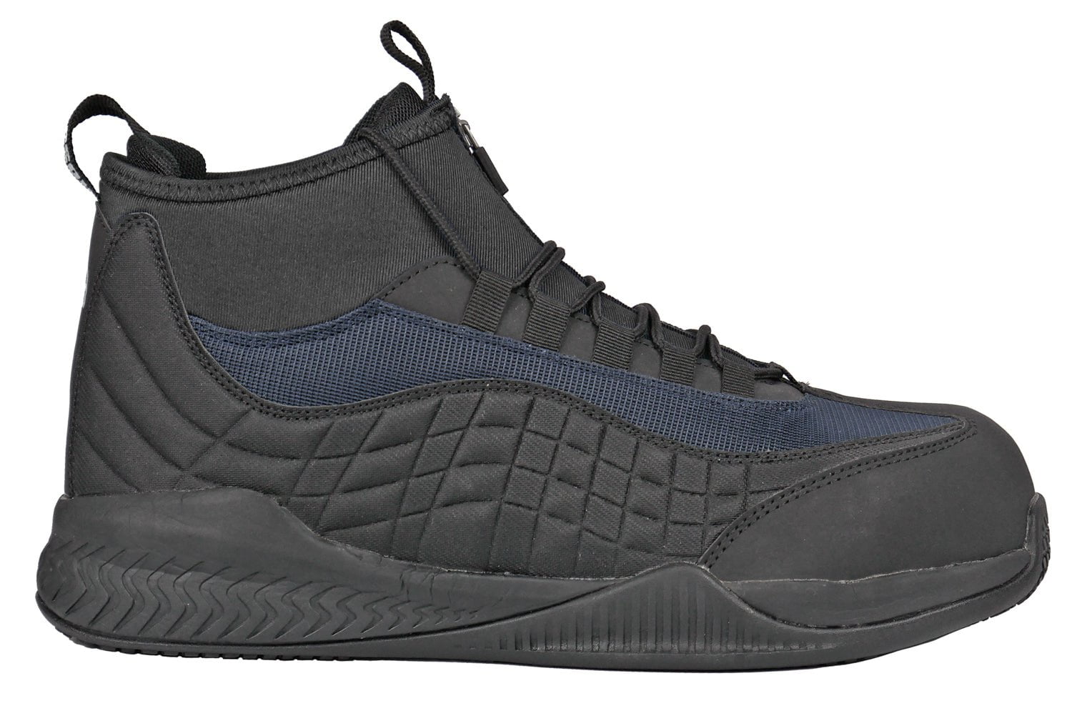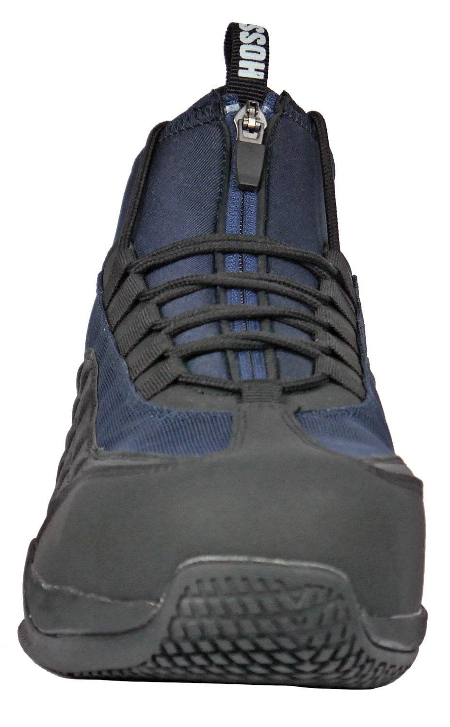 • Black microfiber and navy mesh upper Hoss Boot Company was founded to provide more carefully crafted work footwear choices for hard-working men and women. These men work boots feature black microfiber and navy mesh upper, composite toe, and a slip-resistant rubber outsole. Stay protected and keep working with this great safety footwear!